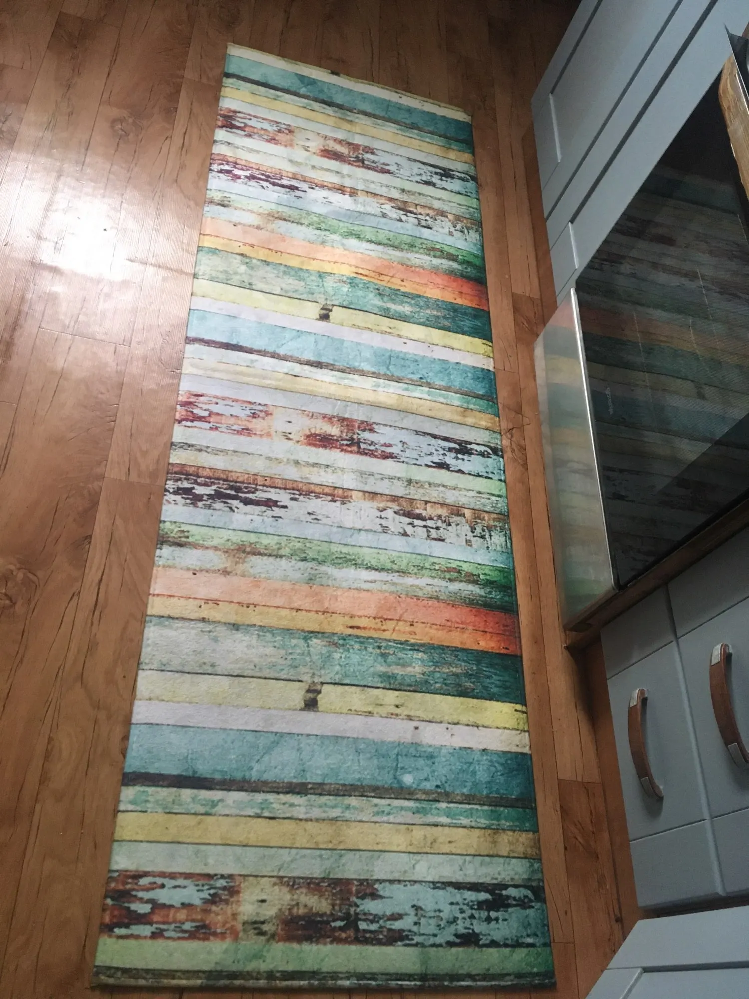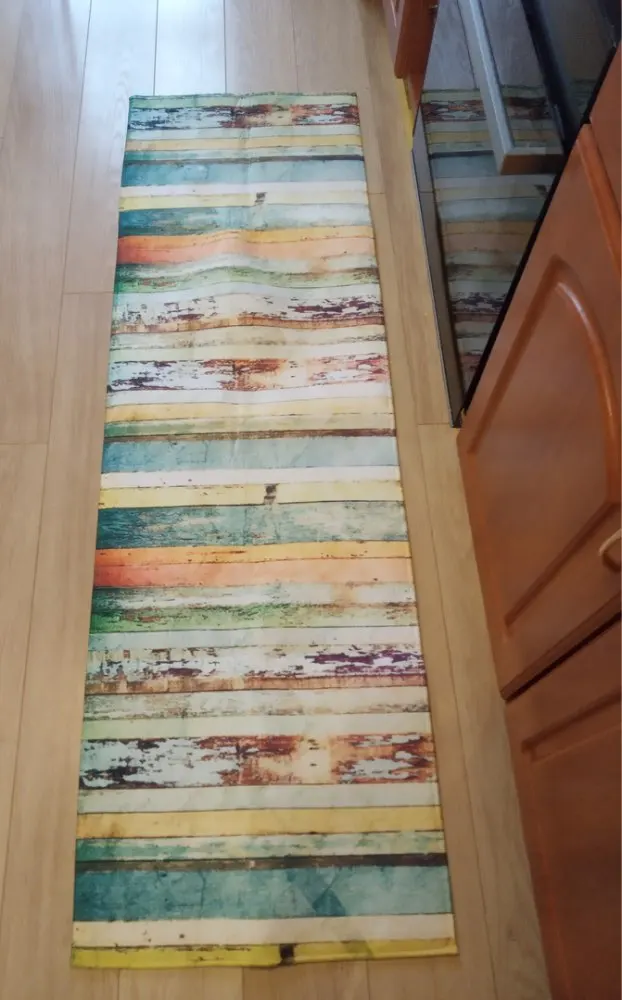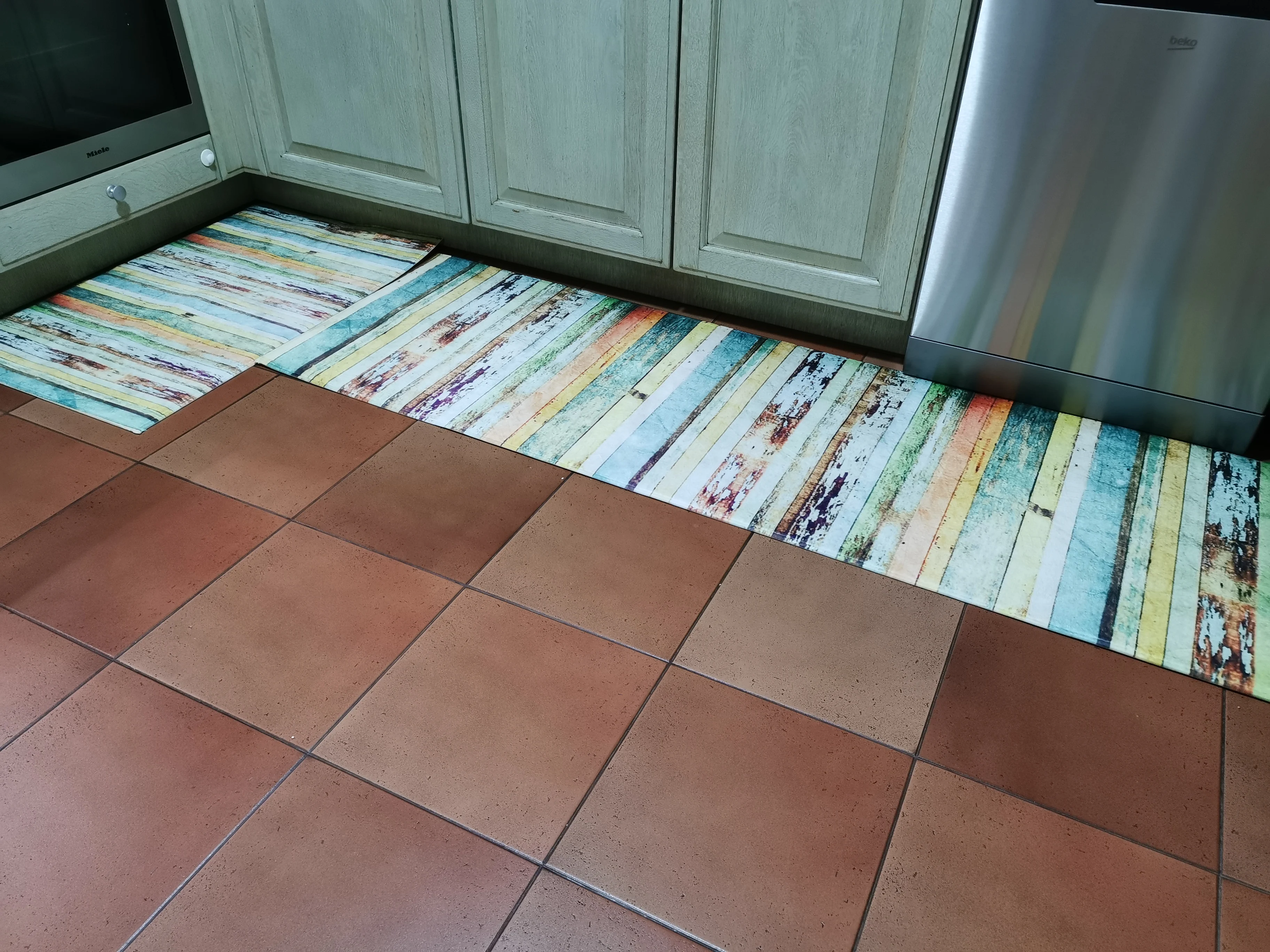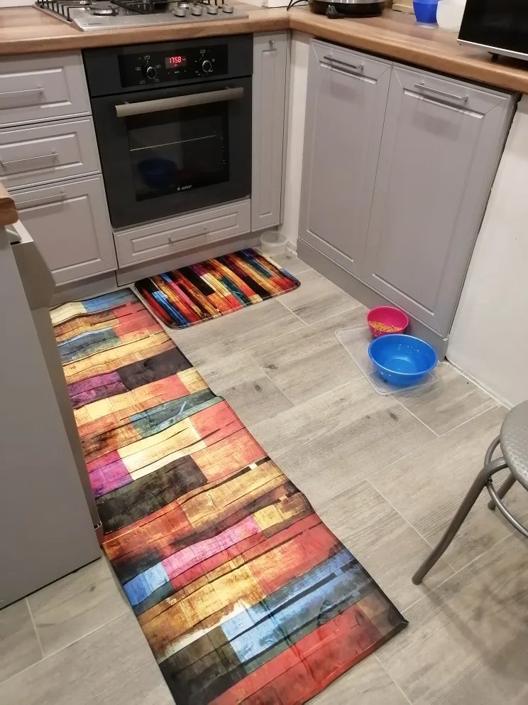 Коврик очень красиво смотрится, освежает всю кухню, приятно смотреть на него, мягкий, не скользит. Спасибо продавцу.