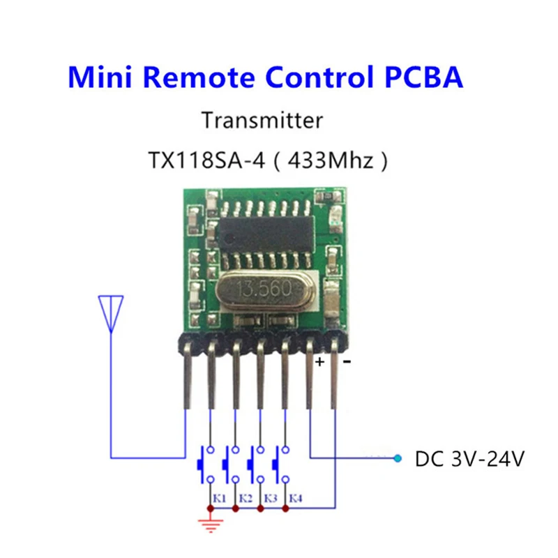 Номер моделиTX118SA-4 RF 433Mhz Wireless Remote Control Transmitter EV1527 encode