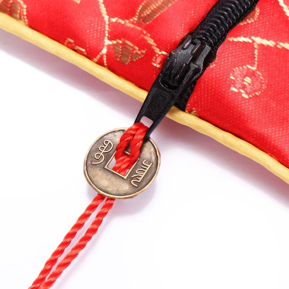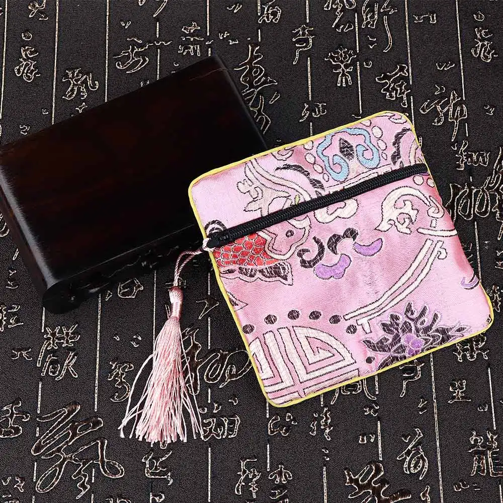 Сумочка для мелочи в китайском стиле, прямоугольная шелковая парчовая сумочка на молнии с кисточкой, подарочная сумочка для хранения ювелирных изделий, безделушка, косметичка, 1 шт.