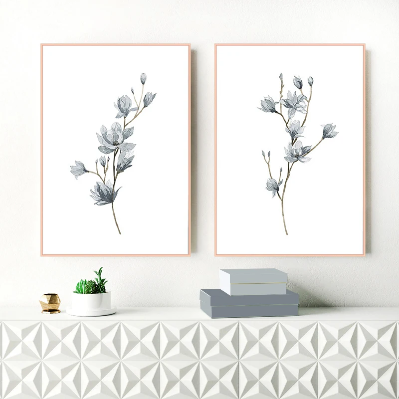 Плакаты и принты с цветами магнолии, акварельные, цветочные, для спальни, настенная живопись, картины для гостиной, домашний декор