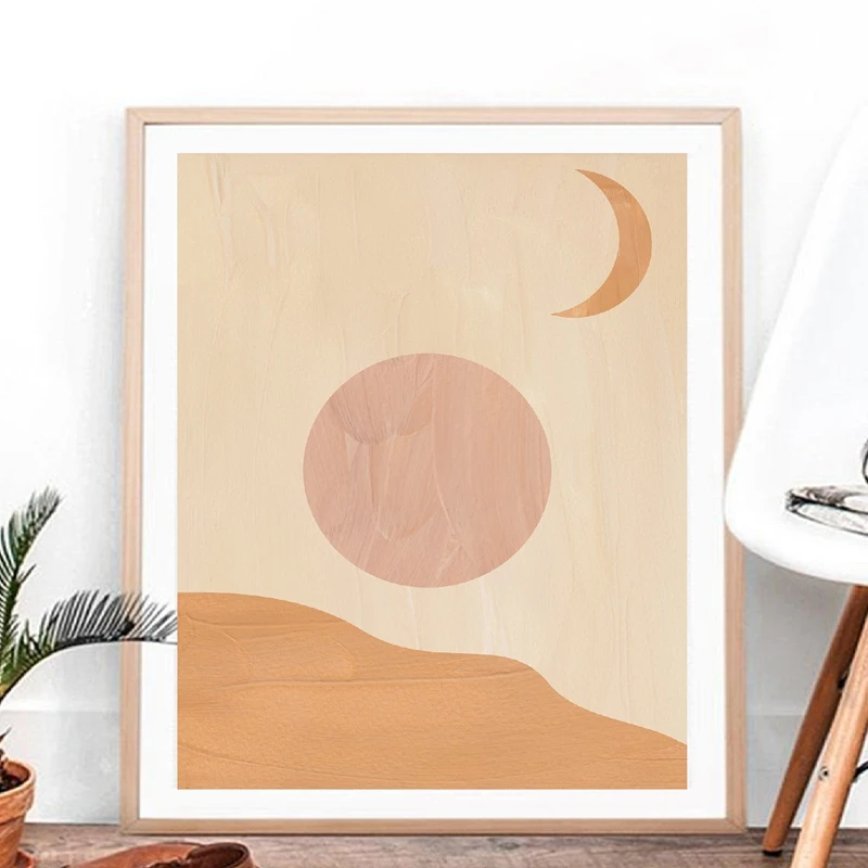 Абстрактное изображение Солнца и Луны, Картина на холсте в стиле бохо, сгоревший оранжевый, розовая, плакат для рисования, минималистский домашний Настенный декор