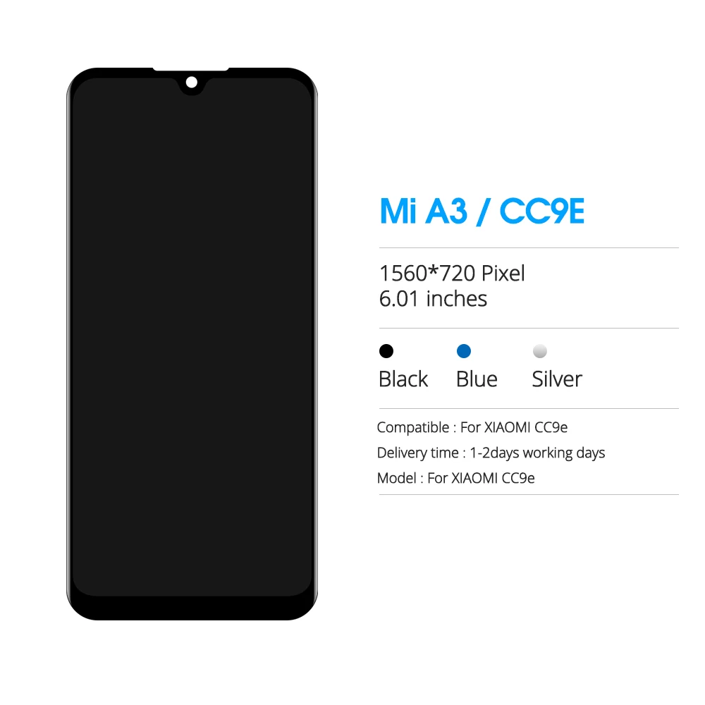 Оригинальный ЖК-дисплей 6,01 ''Super AMOLED для Xiaomi Mi A3, сенсорный экран, дигитайзер в сборе, запасные части для Xiaomi CC9e lcd