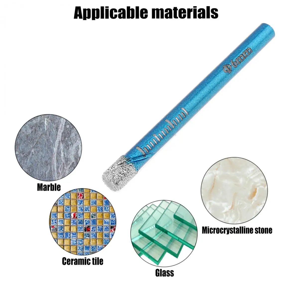 Применение:-Подходит для бурения всех керамических плиток, витрифицированного кирпича, обычного стекла, керамики, мрамора, гранита, микрокристаллического и других материалов.-Запрещено сверлить древесину, пластик, металл, закаленное стекло и другие материалы.