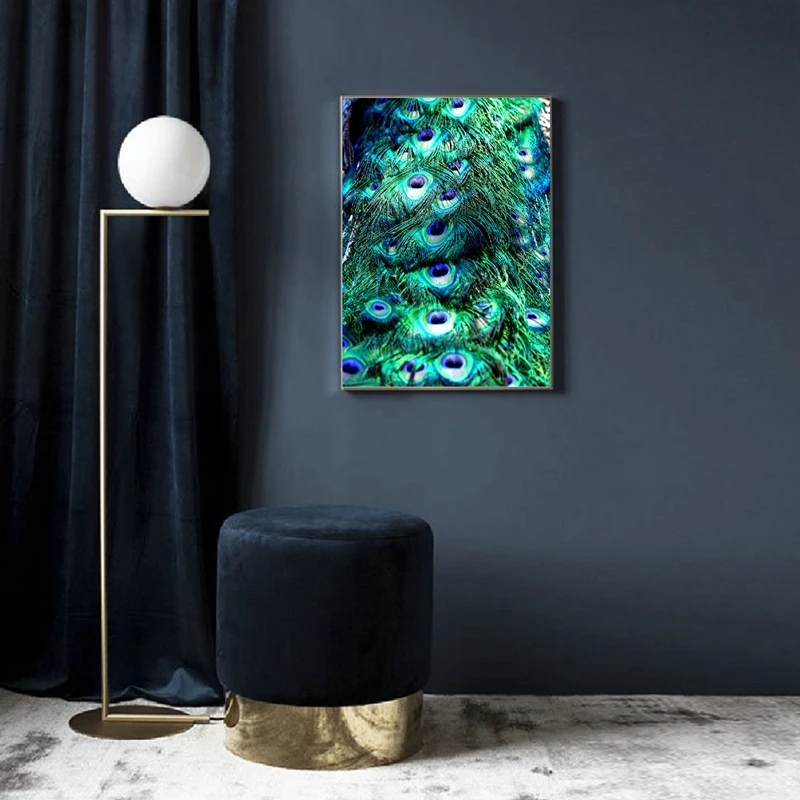 Современный Красивый постер с павлиньими перьями, скандинавский домашний настенный художественный принт, Картина на холсте, синяя картина для гостиной, домашний декор