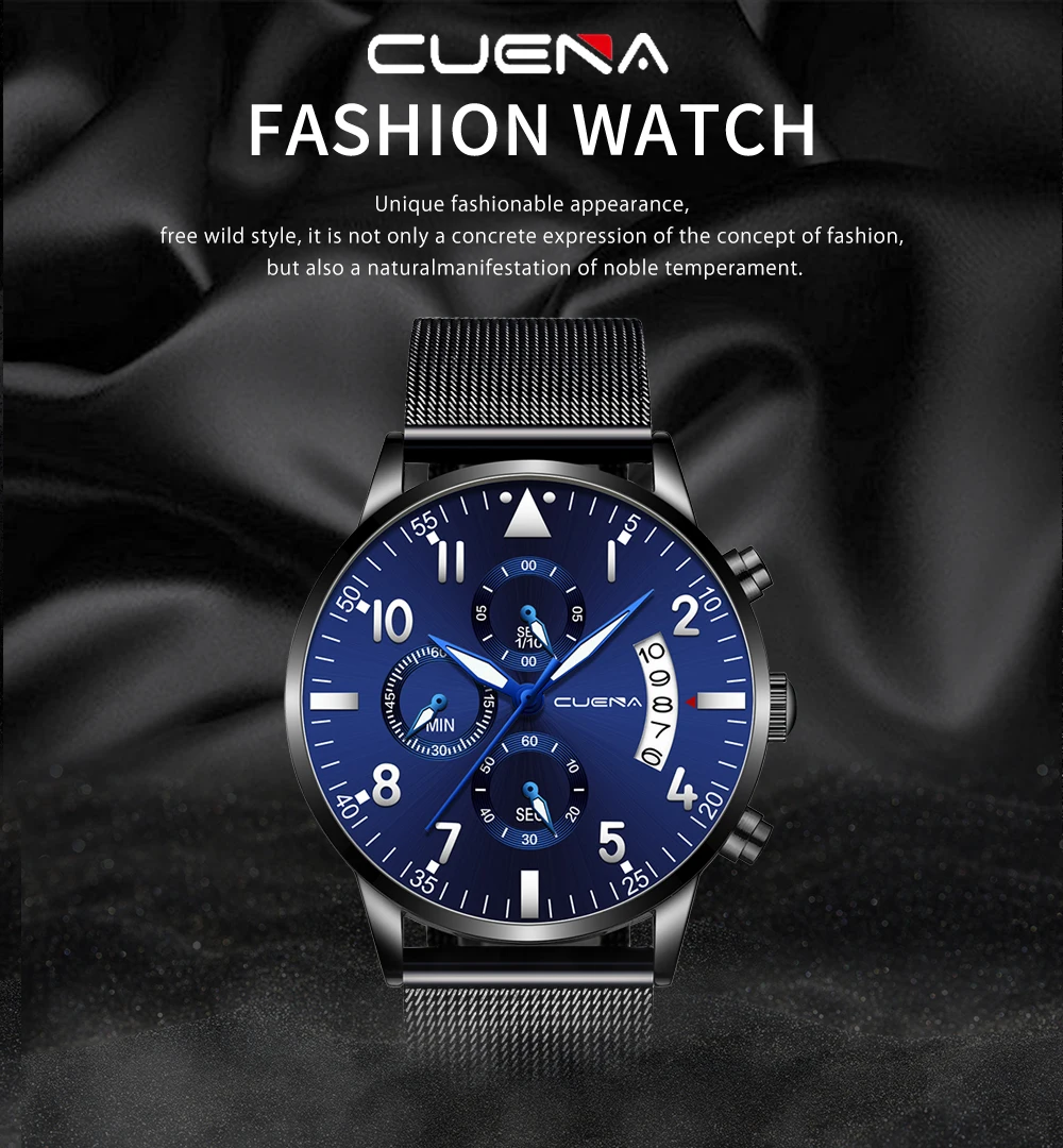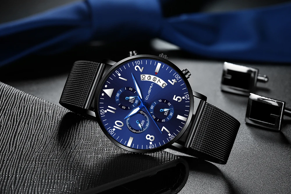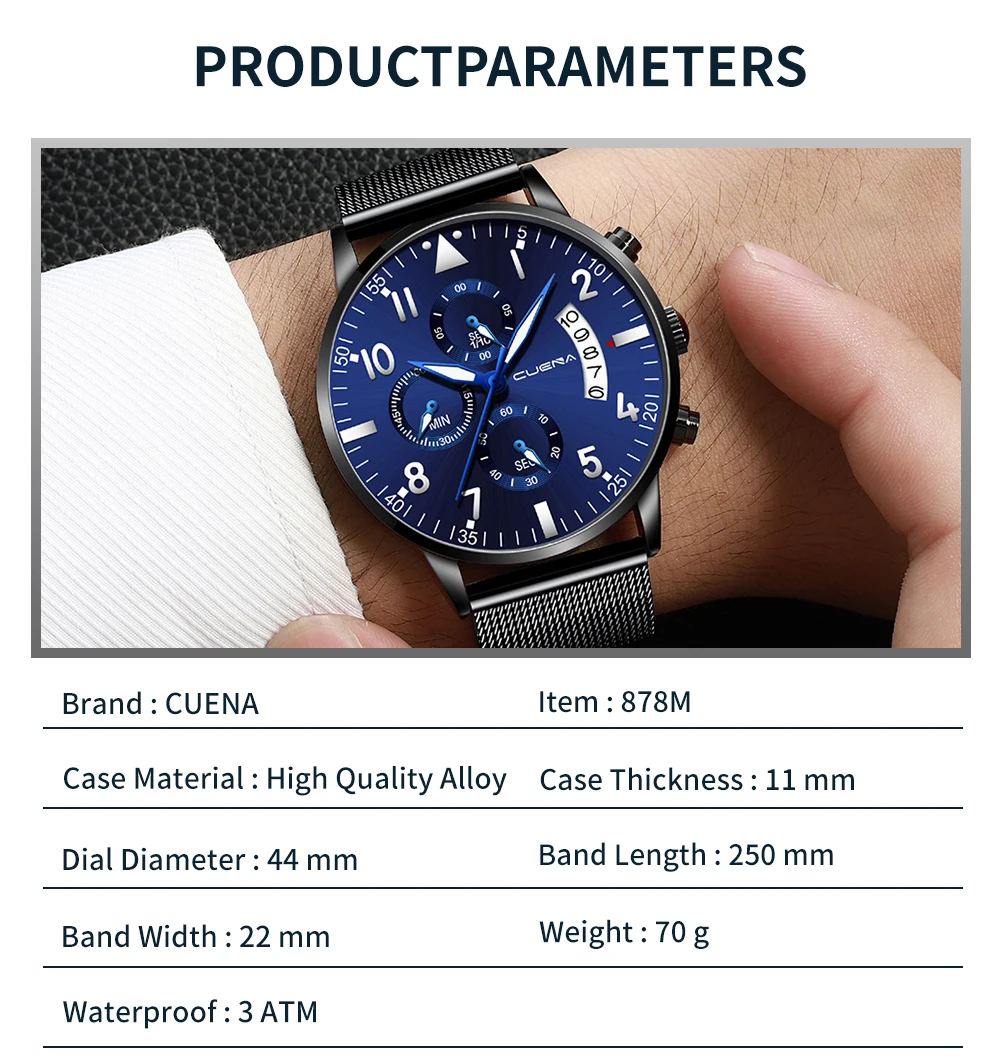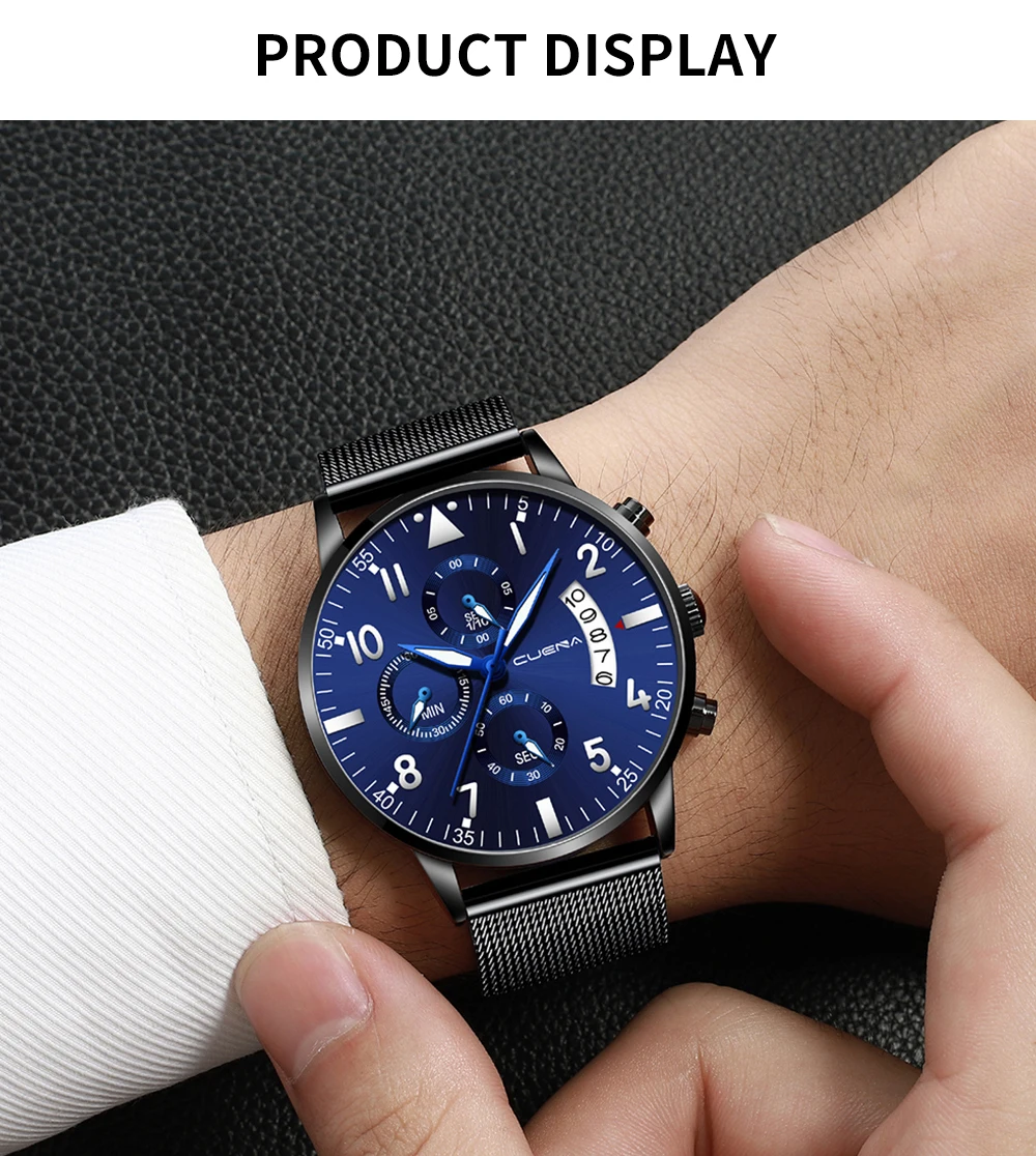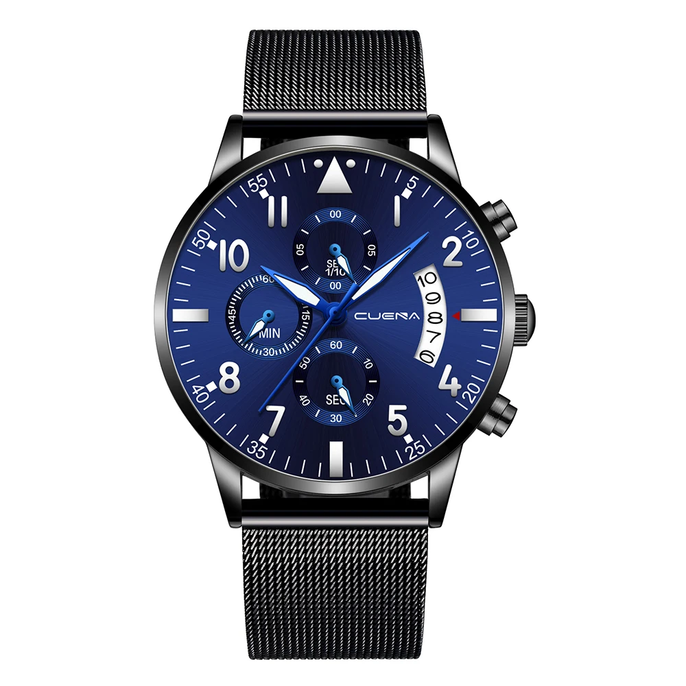 Часы наручные CUENA мужские водонепроницаемые, брендовые Роскошные Синие ультратонкие Простые повседневные кварцевые спортивные, с датой
