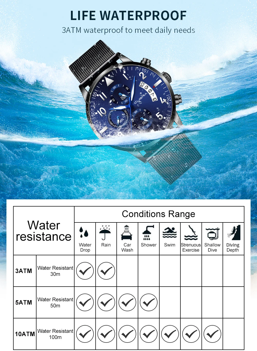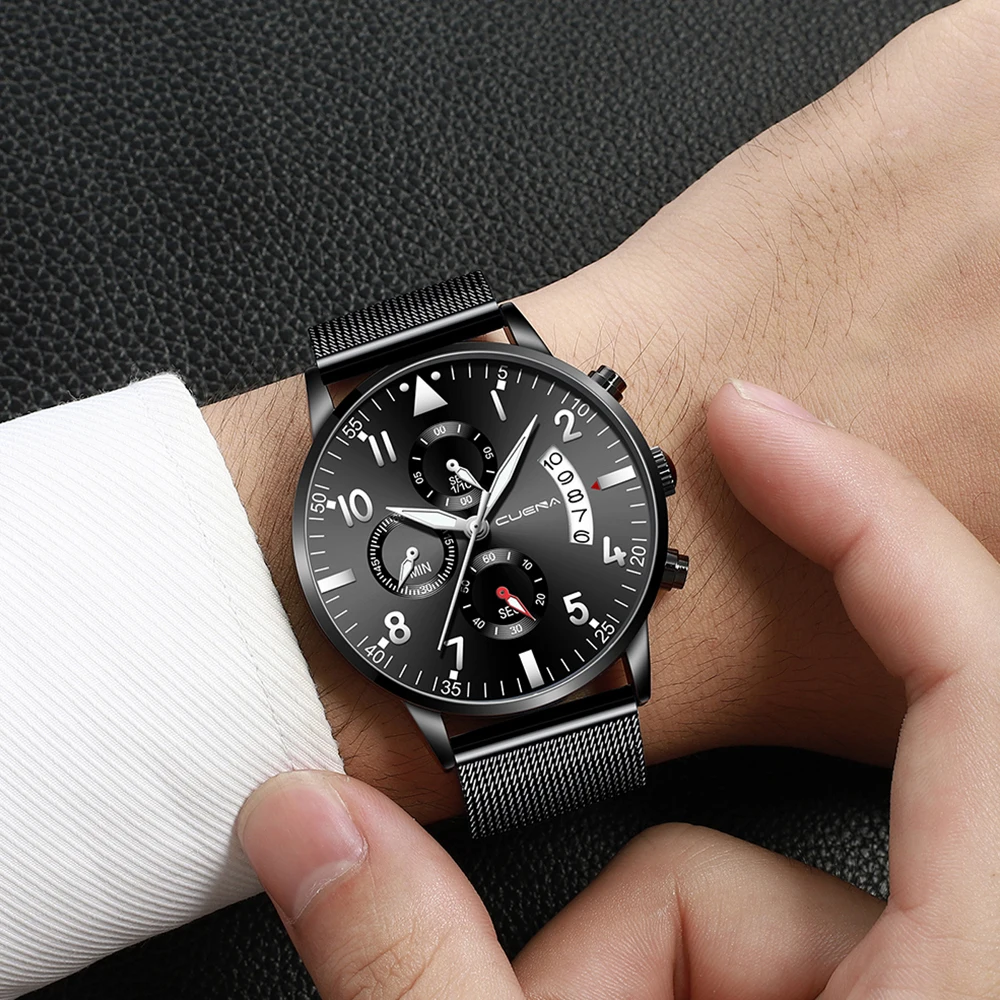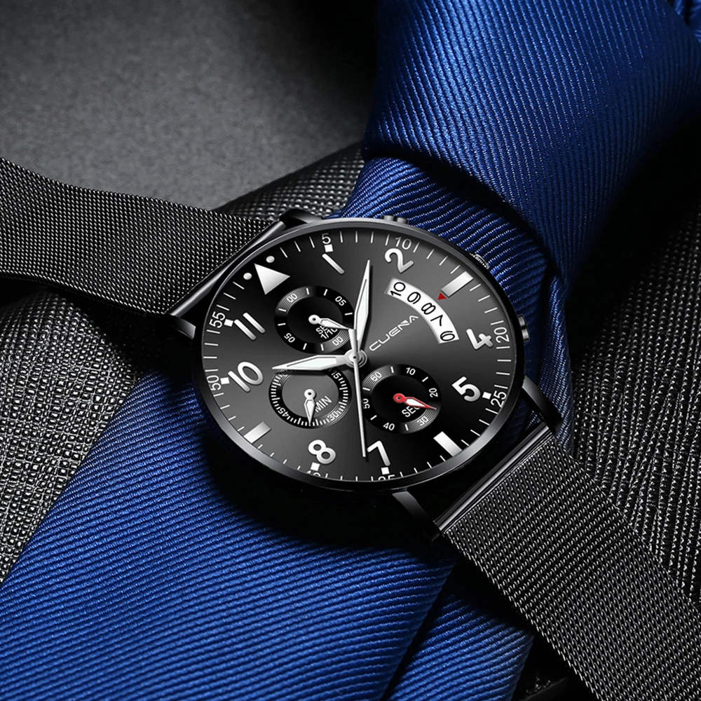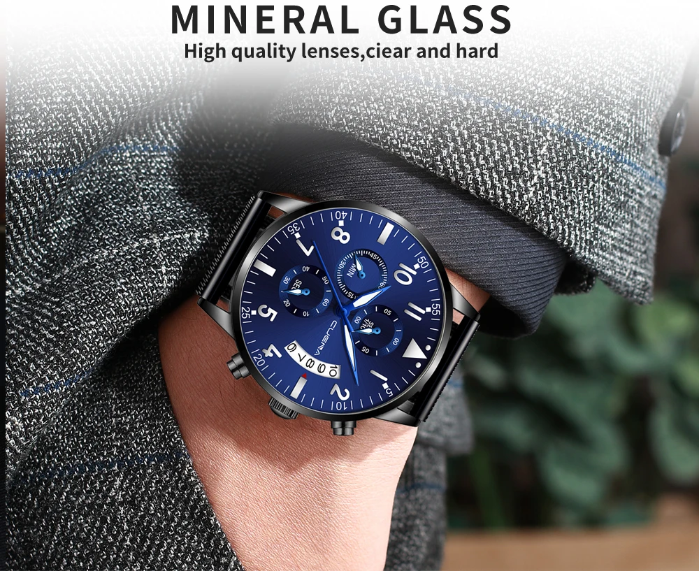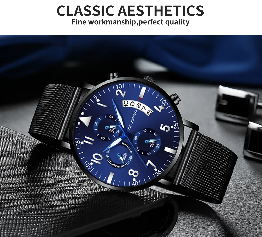 Часы наручные CUENA мужские водонепроницаемые, брендовые Роскошные Синие ультратонкие Простые повседневные кварцевые спортивные, с датой