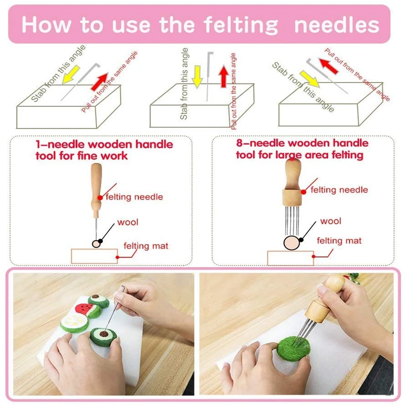 Набор инструментов для валяния игл изготовлен из превосходного металла и дерева, прочный и обеспечивает длительное использование. Инструмент для валяния из деревянной шерсти очень прост в использовании! Иглы для валяния довольно деликатные и легко ломаются при неправильном использовании. Пожалуйста, используйте его на поролоновом коврике, чтобы избежать повреждения. Каждая поверхность продукта покрыта антикоррозийным маслом перед отправкой, пожалуйста, протрите перед использованием.