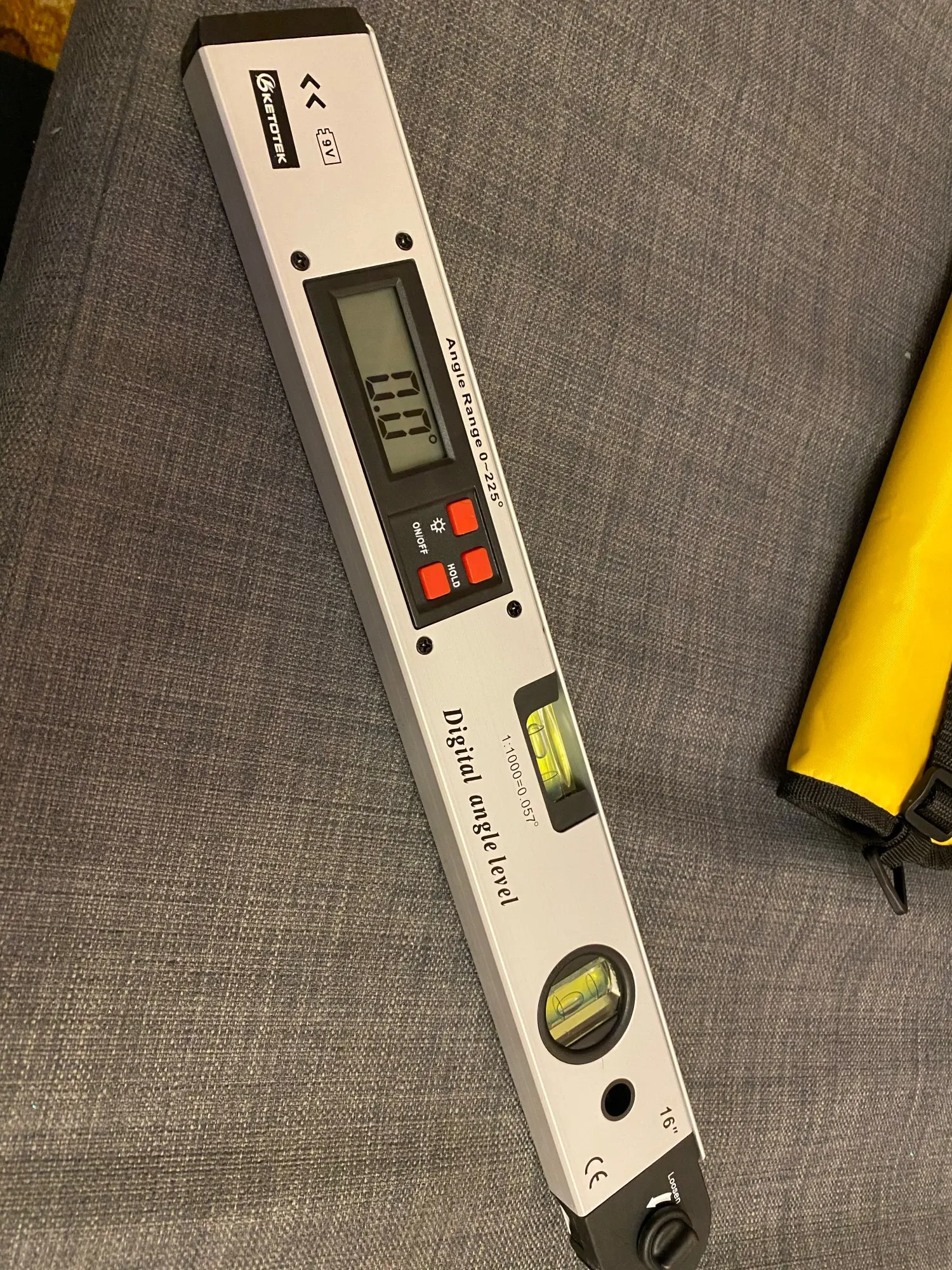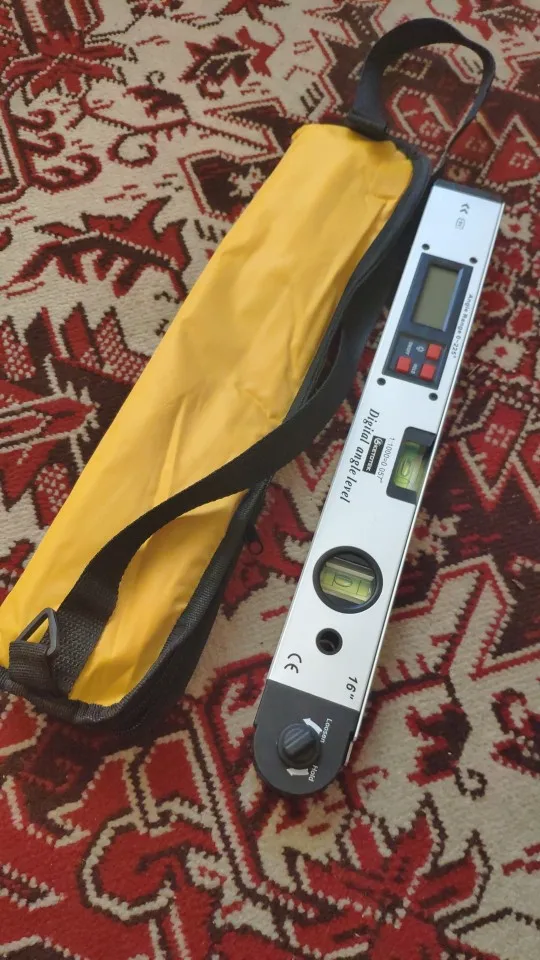 Нужно очень внимательно читать описание. Я думал, что уровень в данном устройстве тоже цифровой. Однако цифровой тут только угломер. Однако угломер точный. Пузырьковый уровень горизонтальный в норме, Вертикальный не точный сбит.