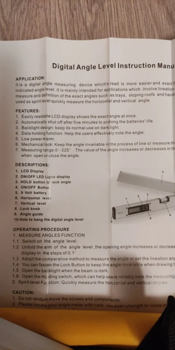 Угломер пришел быстро ,сделан добротно , в комплекте мягкий чехол .Углы показывает вроде верно.Покупкой доволен
