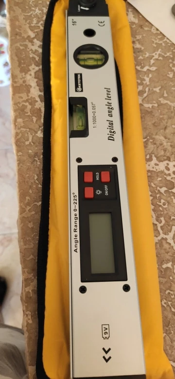 Так вроде все норм. Немного люфтит корпус, нет ощущения жёсткости как на уровне который недавно приобрел. Глазки вроде не врут, а вот с угломером проблема: батарейка крона в комплекте отсутствует и проверить оперативно работоспособность прибора возможности нет! Не у каждого дома в заначке лежит крона, поэтому три звезды за невозможность проверить товар.