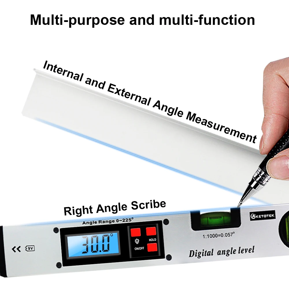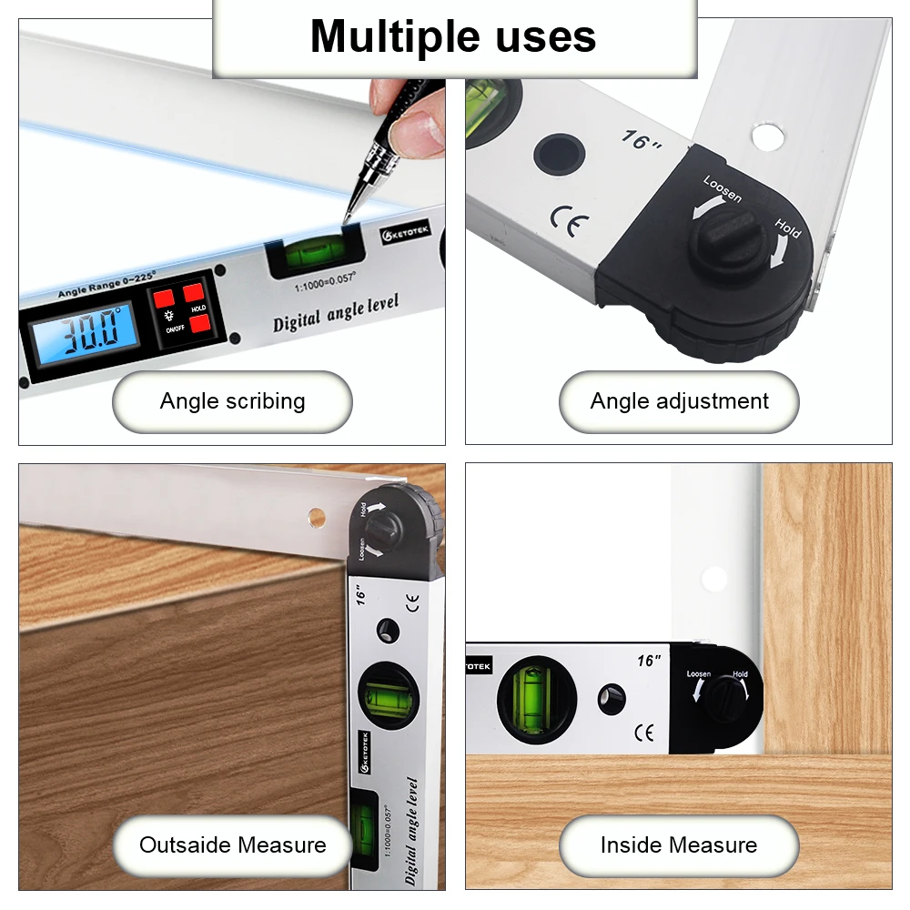 Заказ пришел в течении трех недель, меряет только угол. Наклон только по пузырькам.