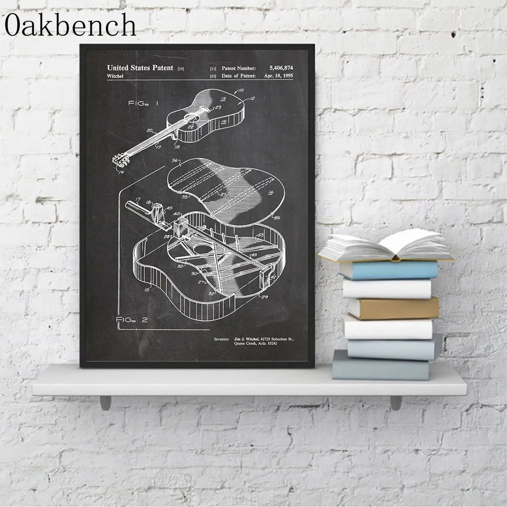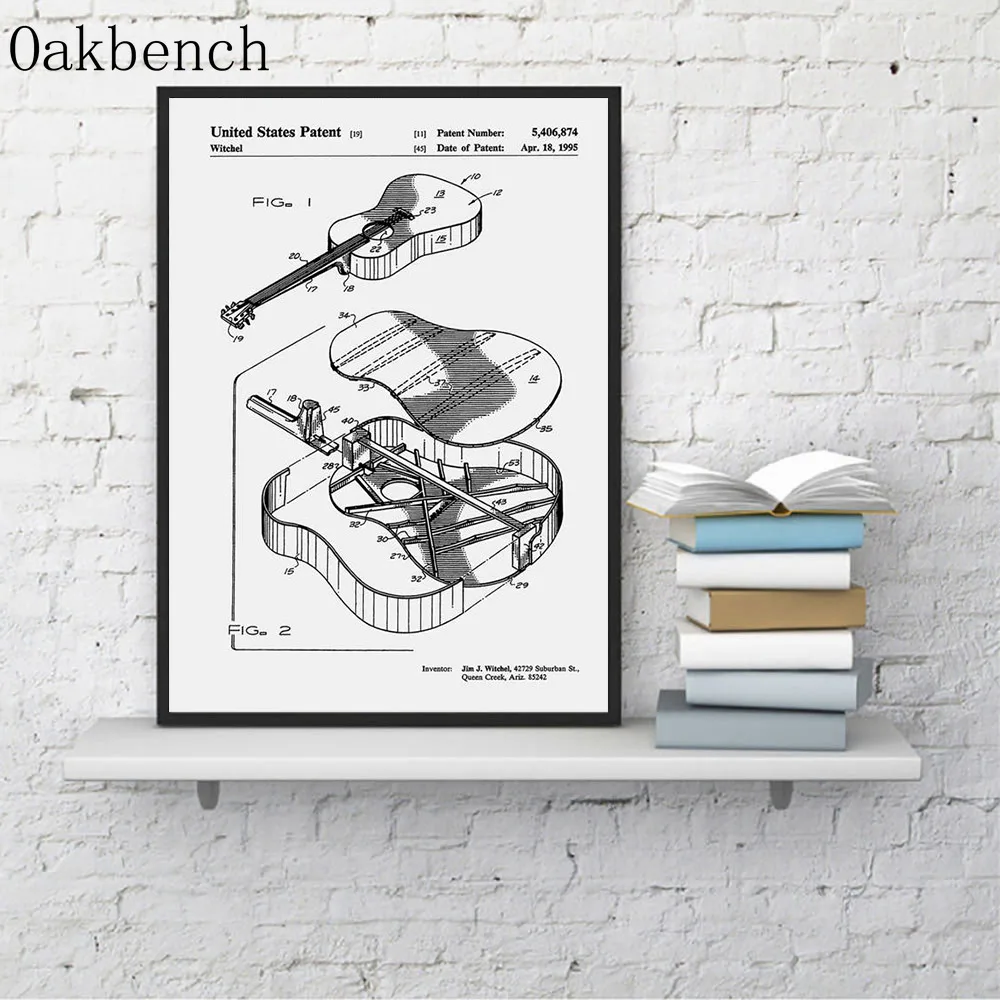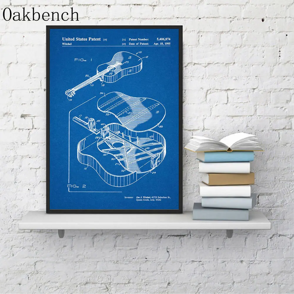 Абстрактная Картина на холсте с гитарой Martin, акустическая гитара, патент, винтажные постеры, Whammy Bar, художественные принты, схема, декор музыкальной комнаты