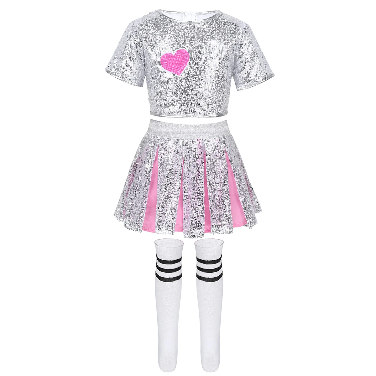 В комплект входит: 1 укороченный топ, 1 юбка, 1 пара носков