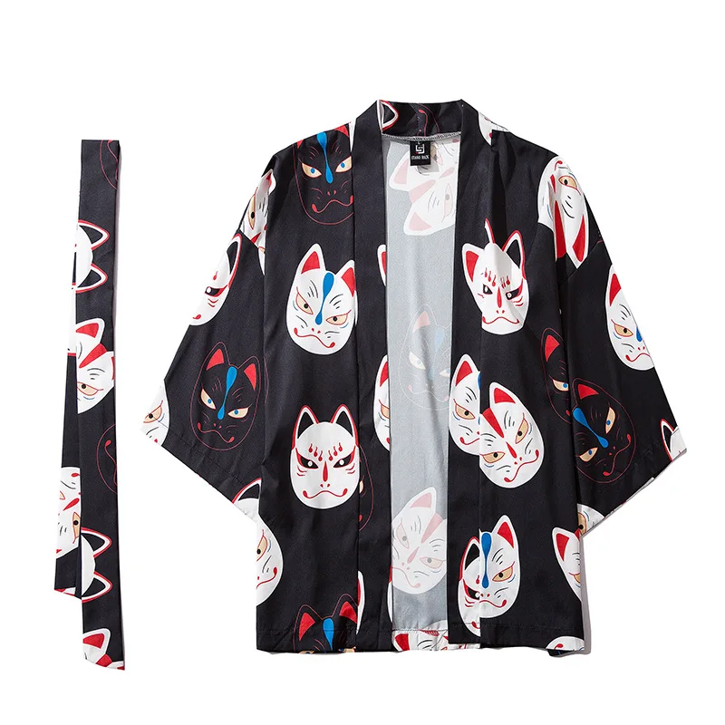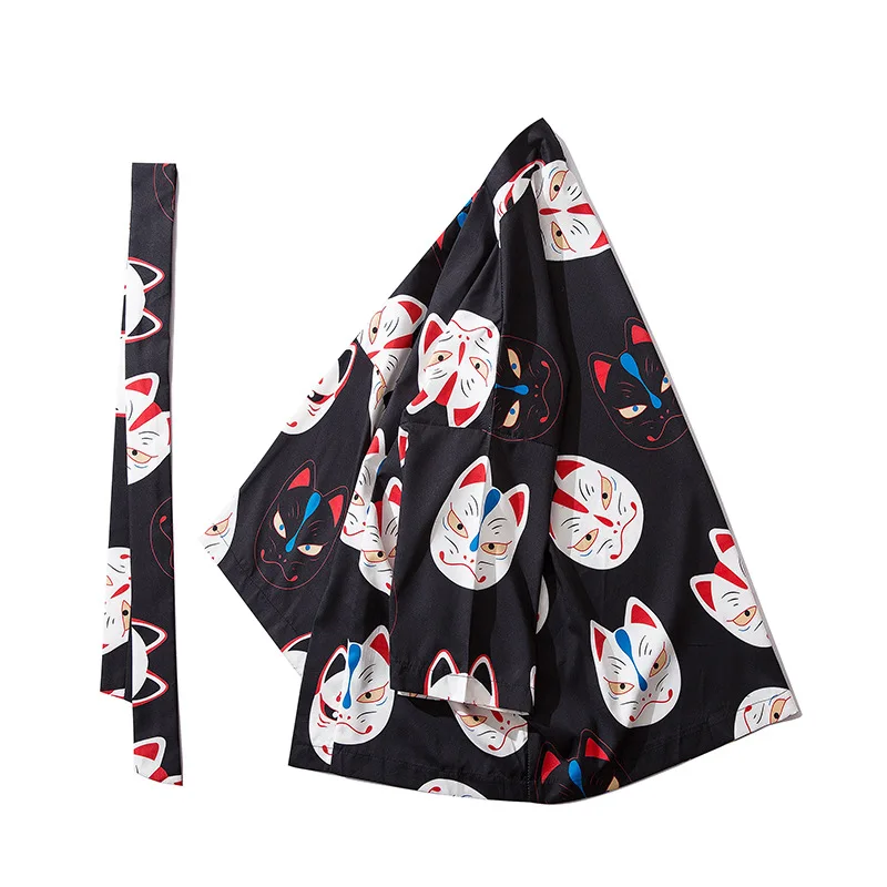Японское кимоно, кардиган, мужская рубашка, юката, женская, счастливая кошка, мужская, хаори, азиатская одежда, кимоно укиё-э, Оби юката FF2412