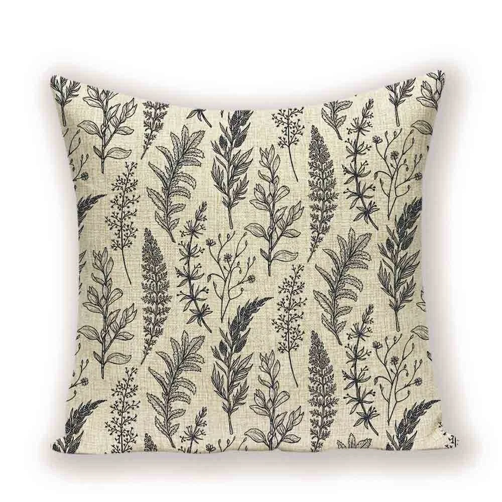 Наволочка для подушки с растениями, Цветочная подушка, льняные наво...
