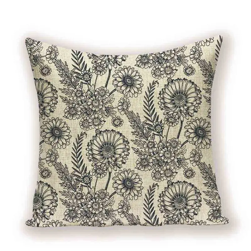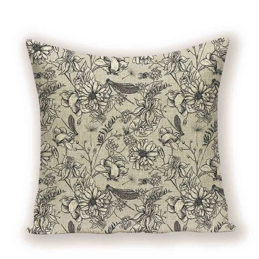Чехол в стиле ретро с изображением цветов, декоративные льняные нав...
