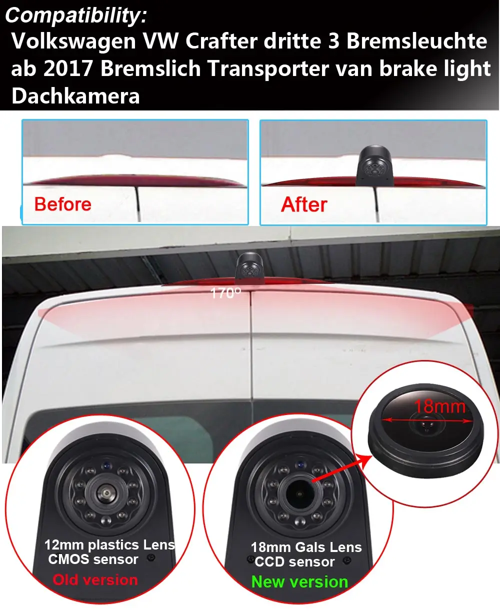 Автомобильный стоп-светильник, 18 мм, HD объектив, камера заднего вида для VW CRAFTER van 2015 2017, водонепроницаемая тормозная камера