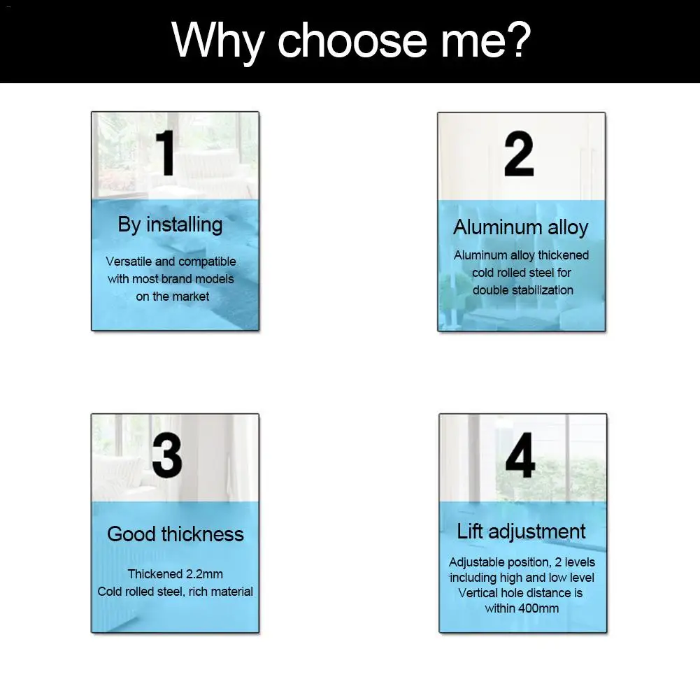 Точки пули:1. Идеальная подставка: вы потеряли свою оригинальную подставку для телевизора, когда на стене установлена новая подставка? Подставка для телевизора-идеальная подставка для вашего телевизора с плоским экраном.2. Легкое подключение: подставка легко соединяется с отверстиями для болтов позади телевизора для прочной и гладкой установки столешницы.3. Регулируемая высота: Благодаря регулируемой высоте и прочному изящному дизайну подставка станет идеальным решением для вашей плоской панели телевизора.4. Высокая стабильность: тяжелая сталь может выдерживать нагрузку до 15 кг, идеально подходит даже для крупнейших плазменных телевизоров. Расширенное основание обеспечивает высокий уровень стабильности. Несколько установочных отверстий и два уровня регулировки высоты основания позволяют достичь идеальной высоты телевизора.5. Устойчивость к царапинам: мягкая подкладка гарантирует, что ваш столик или развлекательная подставка не поцарапаны. В комплект входит все необходимое оборудование и простота выполнения инструкций по установке.Технические характеристики:Модель: Универсальное алюминиевое основание с двумя способами установкиНесущая способность: более 15 кгКатегория: ТВ-подставкаСпособ управления: механическийПоддерживающий Материал: алюминиевый сплавМожно ли повесить: нетПараметры: алюминиевая универсальная основа DZ88.Шаг: 2-5,5Алюминиевое универсальное основание DZ88Подходит для телевизоров с ЖК-дисплеем 32-65 дюймовМатериал: алюминиевый сплавУпаковочный лист:2 * TV BaseПримечания:В связи с тем, что измерения выполнены вручную, допускается погрешность в 1-3 см. Перед заказом убедитесь, что вы не возражаете.