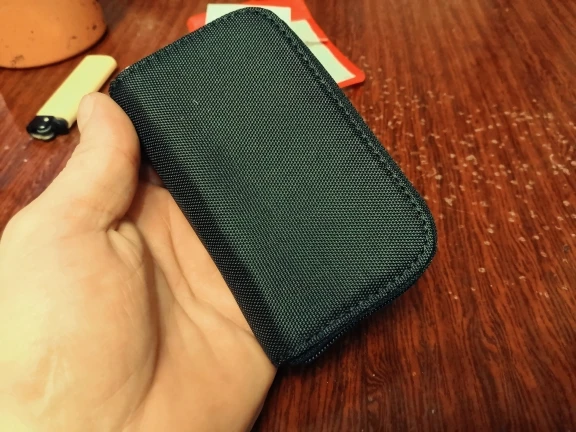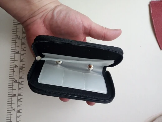 Доставка 33 дня, трек отслеживался на всем пути. Неплохой, компактный органайзер для SD и CF карт. Размеры примерно 11x6.5 см. Рассчитан на 18 SD и 4 CF карты. Карты держатся надежно, не выпадают. Из минусов только несколько торчащих ниток. Других претензий нет. Продавца и товар рекомендую.