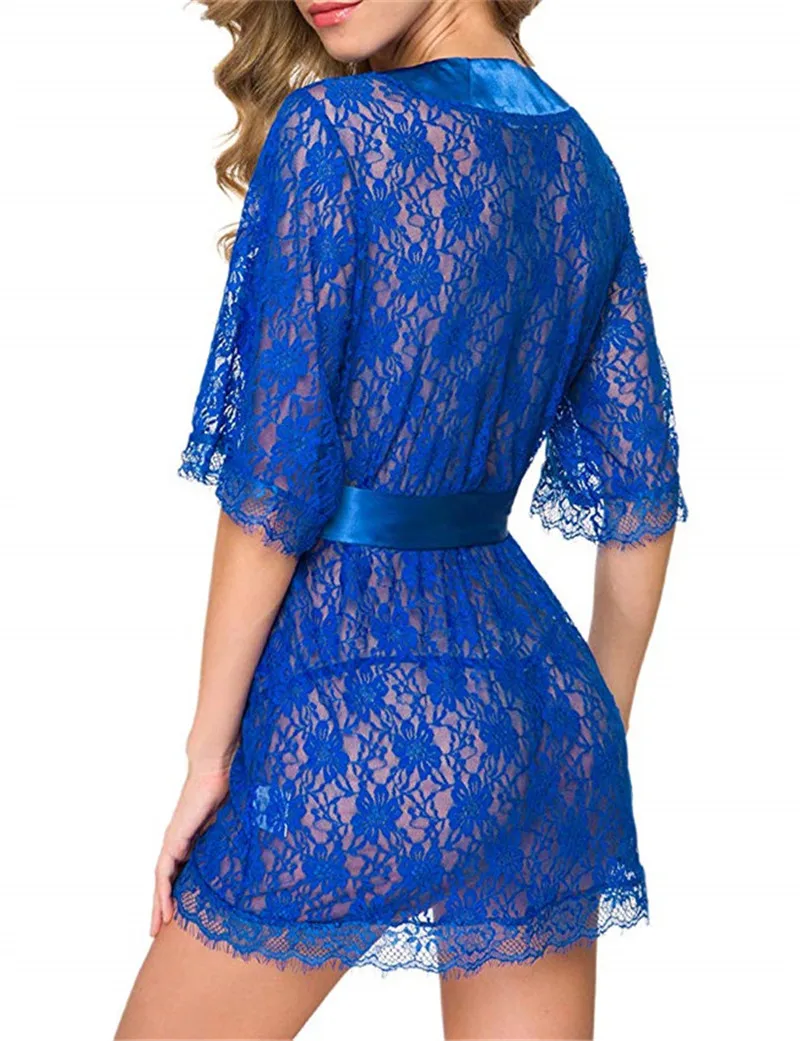Женское сексуальное кружевное платье для сна, прозрачные халаты, одежда для сна, женское белье, Бандажное Сетчатое прозрачное ночное белье