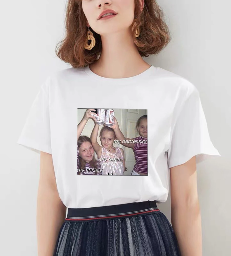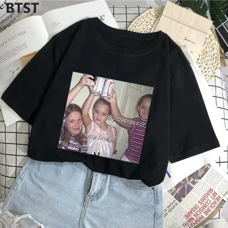 Женская футболка из полиэстера с рисунком Мой беспокойство, мой мозг, моя депрессия, повседневная Милая одежда с круглым вырезом, винтажные топы, 2019