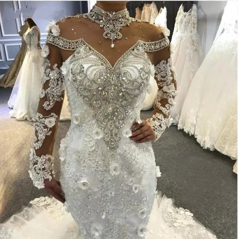 Свадебные платья с бусинами в африканском стиле Русалка с открытыми...