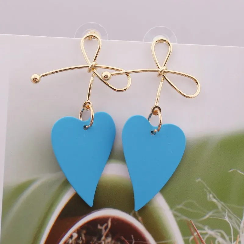 Женские серьги-подвески в Корейском стиле, большие металлические серьги с ромбовидным сердцем красного, желтого, розового цвета, милые свадебные украшения, подарок для девочек