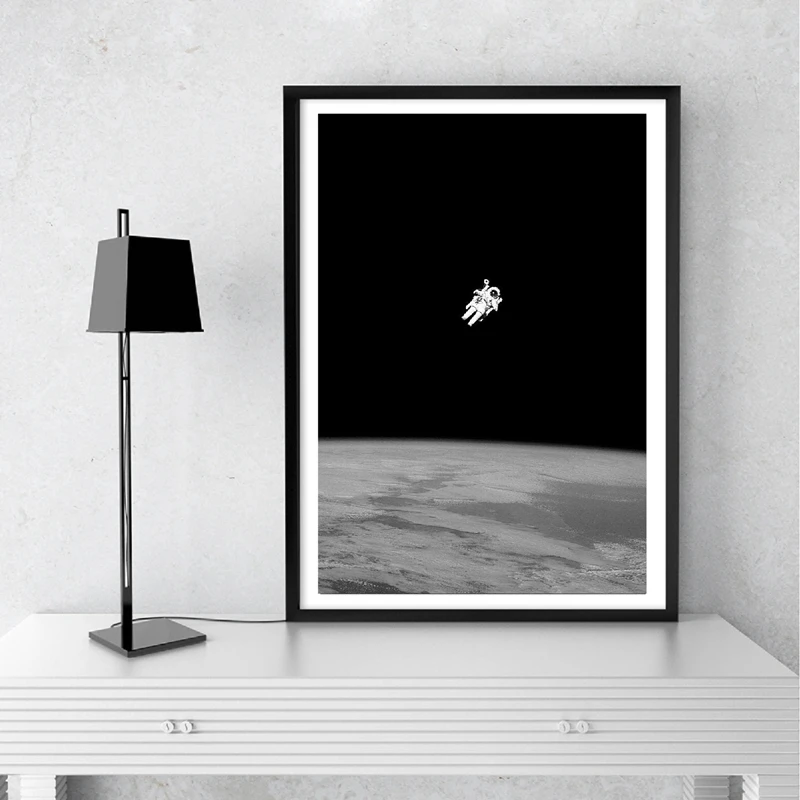 Астронавт космический человек Новая Луна Настенная картина на холсте Черно-белые постеры и принты для детской комнаты настенный Декор подарки для мальчиков