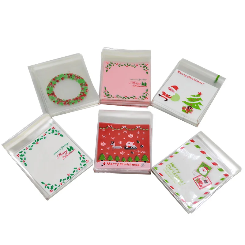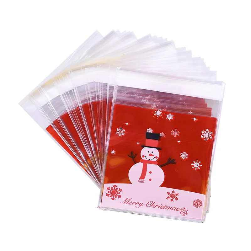 50 шт. 10*10 см рождественские Мультяшные пакеты для конфет самоклеящиеся пластиковые пакеты для печенья рождественские новогодние снэки упаковка, подарочные пакеты Детские сувениры