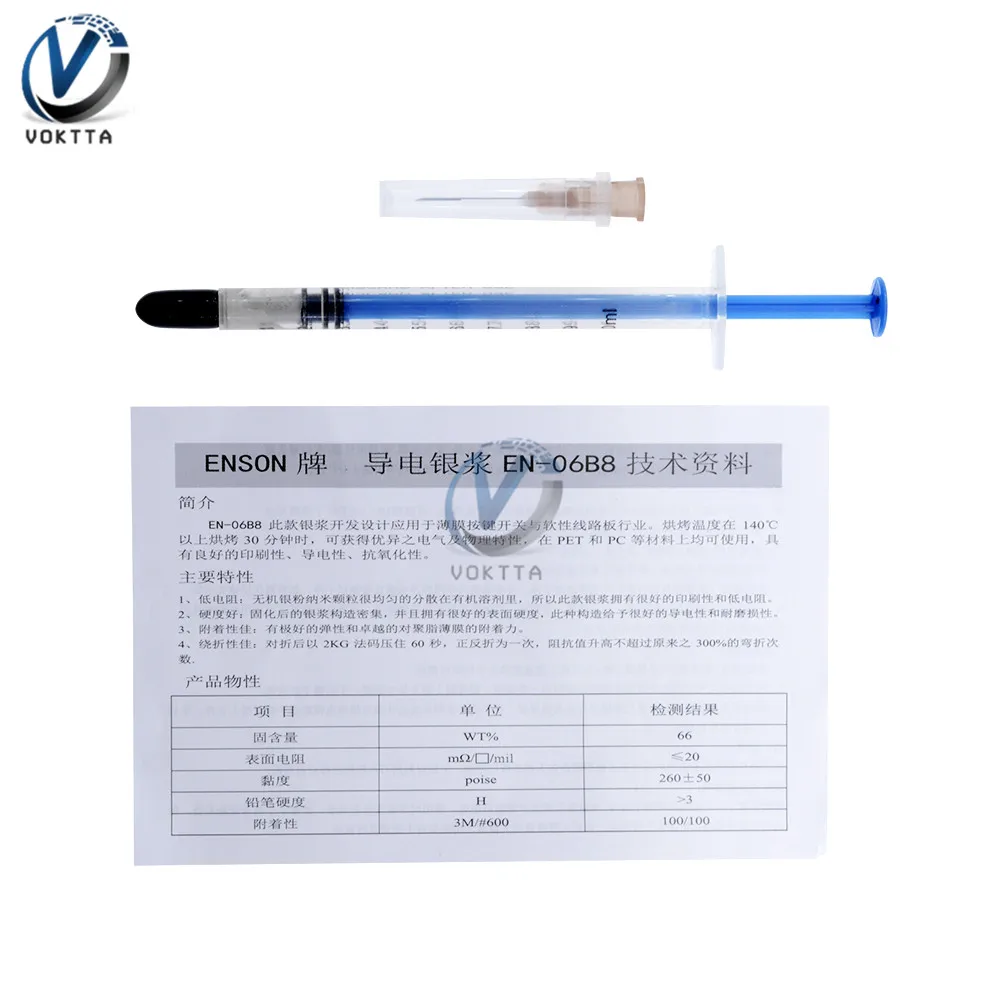 3) 100% чистый серебряный порошок, обеспечивает отличную электропроводность и быстрое высыхание воздуха в плоскую текстуру поверхности.