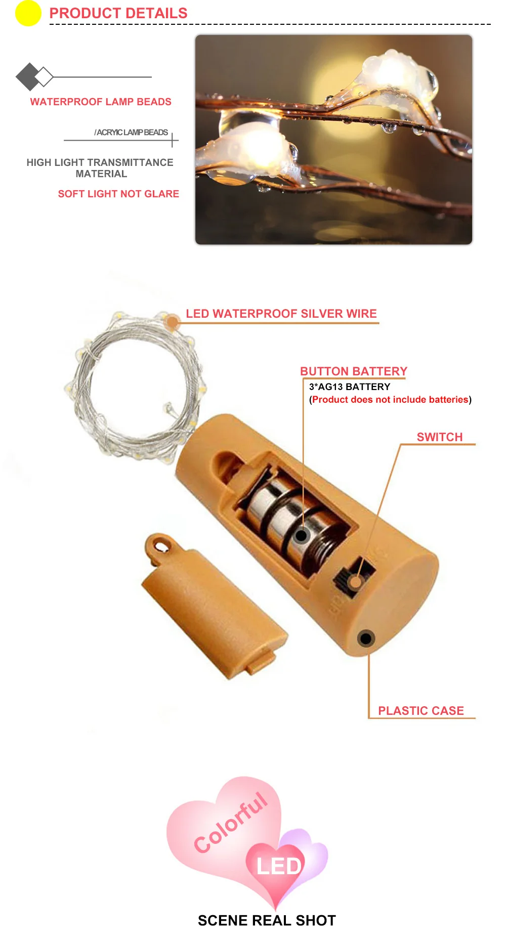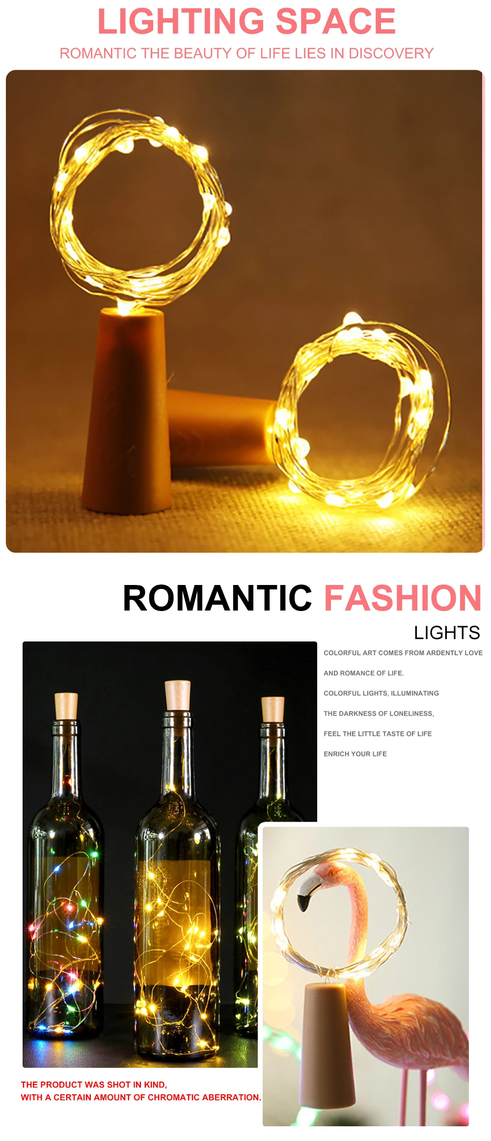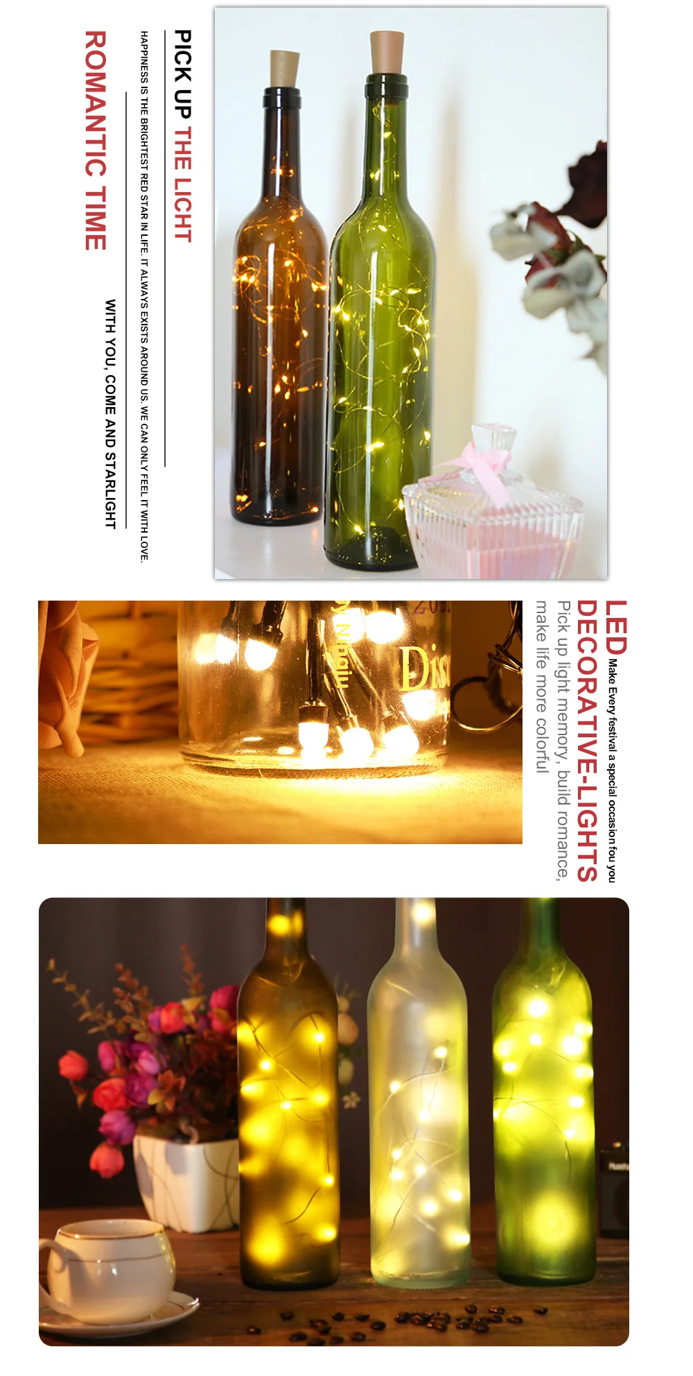 Гирлянда светодиодная для бутылки вина с пробкой, 20 светодиодов