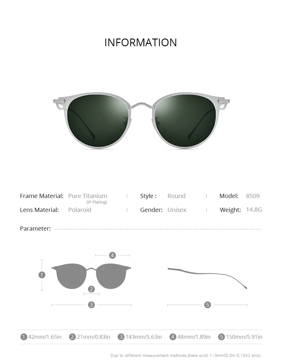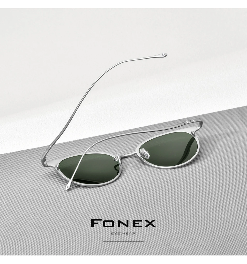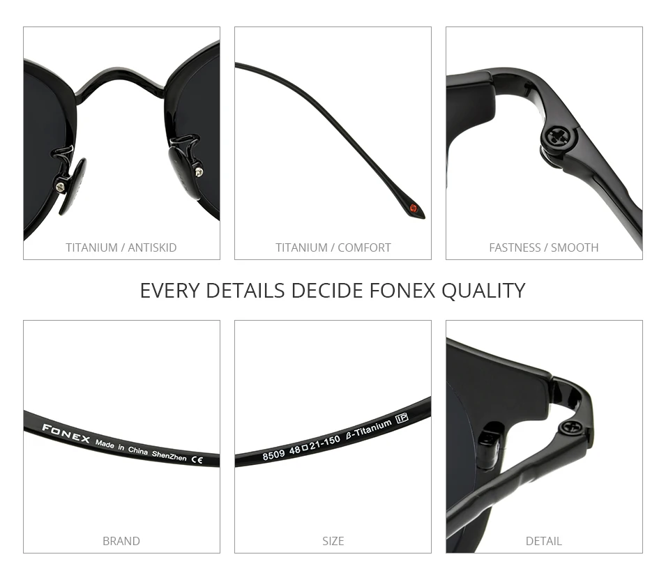 FONEX Солнцезащитные очки T8509 для мужчин и женщин, поляризационные солнцезащитные аксессуары из чистого титана, в винтажном стиле, с защитой UV400, в стиле ретро, 2019