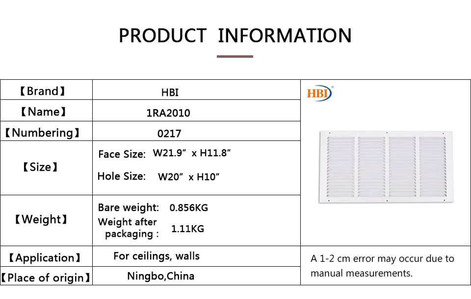 HBI 10 шт W20 "xH10" стальные белые готовые возвратные воздушные решетки потолочное вентиляционное отверстие потолочный кожух воздуховода воздушный регистр вентиляционные решетки