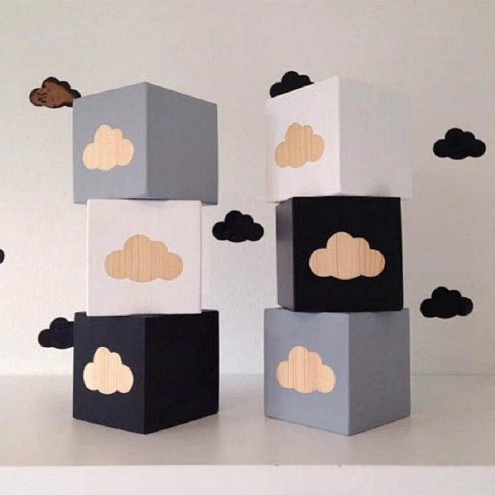 Деревянные строительные блоки 3 шт., украшение для детской комнаты, украшение для детской комнаты, кубик ручной работы, подарки, наклейка, фото реквизит