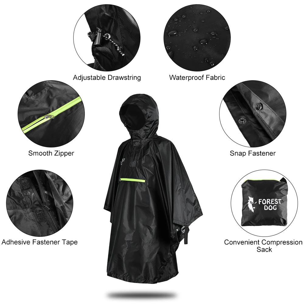 Особенности: Полиэфирная тафта 230T обеспечивает высокую водонепроницаемость, а также износостойкость и долговечность. Регулируемый шнурок и клейкая лента с гладкой молнией защищают вас от дождя и ветра. Широкий светоотражающий ремешок на спине делает поездку более безопасной ночью. Один размер подходит большинству, легко надевать и снимать, достаточно большой, чтобы закрыть рюкзак в дождливую погоду. Поставляется с небольшим карманом для удобного хранения мелких предметов. Легкий и компактный, можно сложить в компрессионную сумку, легко носить с собой. Отлично подходит для кемпинга, походов, альпинизма, также может использоваться как навес или водонепроницаемое наземное сиденье. Характеристики: Материал: полиэфирная тафта Цвет: серый/оранжевый/черный (по желанию) Размер в разложенном виде: 116 см * 160 см/45,7 * дюйма Размер упаковки: 20*5*24 см/7,9*2,0 * дюйма Вес: 300 г/10,6 унции Посылка тация: 1 дождевик 1 компрессионный мешок