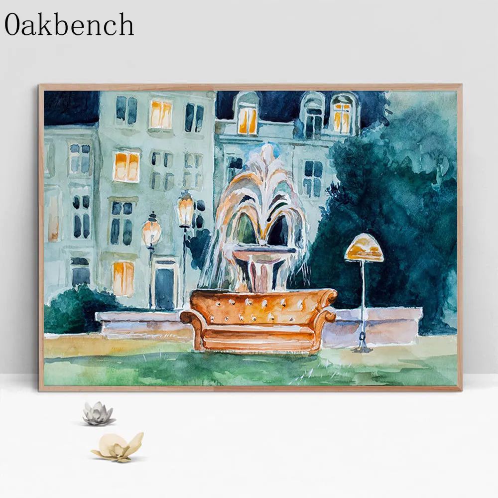 Друзья, ТВ-шоу, фонтан, холст, плакаты 90-х, ситком, центральный кушетка, Художественная печать, ТВ-серия, настенные картины для декора гостиной