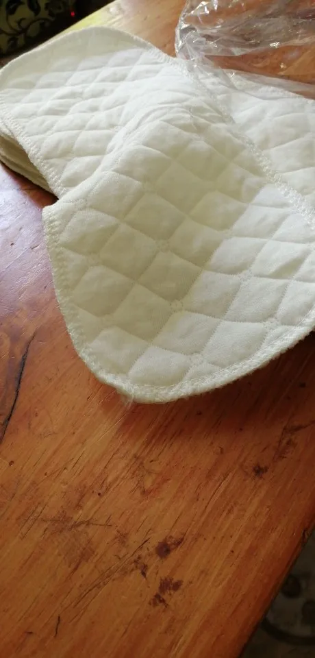 Тонкие, для подгузников нужно по 3 или 4 штуки за один раз использовать, чтобы получить необходимую толщину. После первой стирки сели на 2.5-3 см в длину. и примерно на сантиметр в ширину. Для примера сделала фото данного вкладыша по сравнению с угольными бамбуковыми вкладышем. Доставка 3 недели в Казань