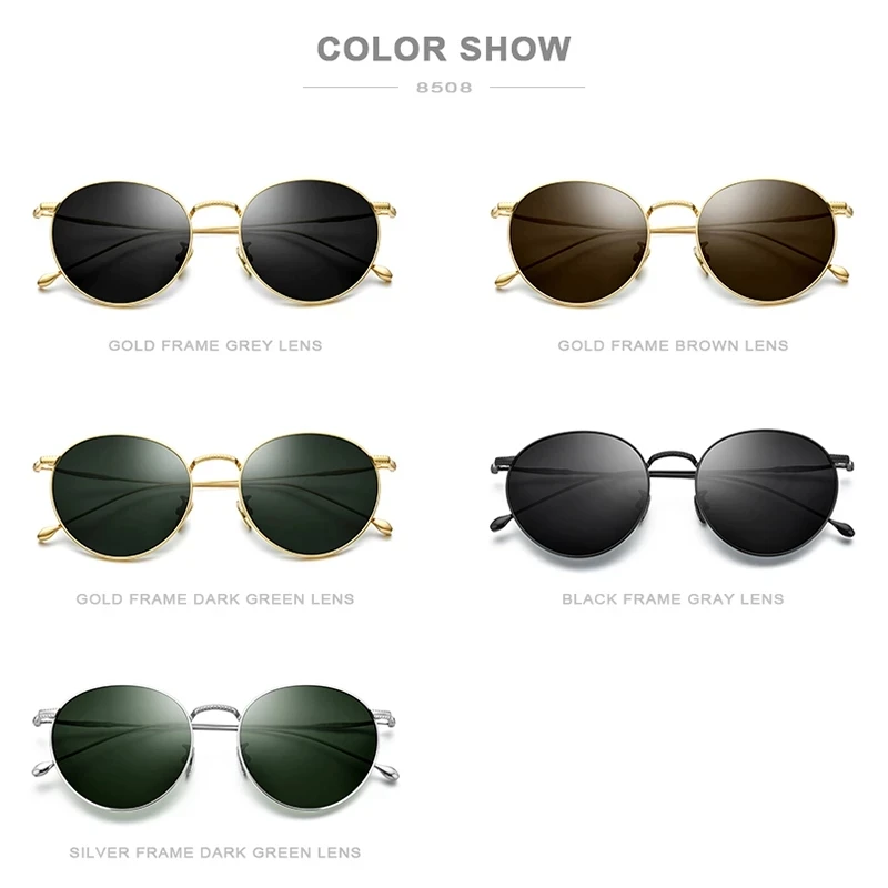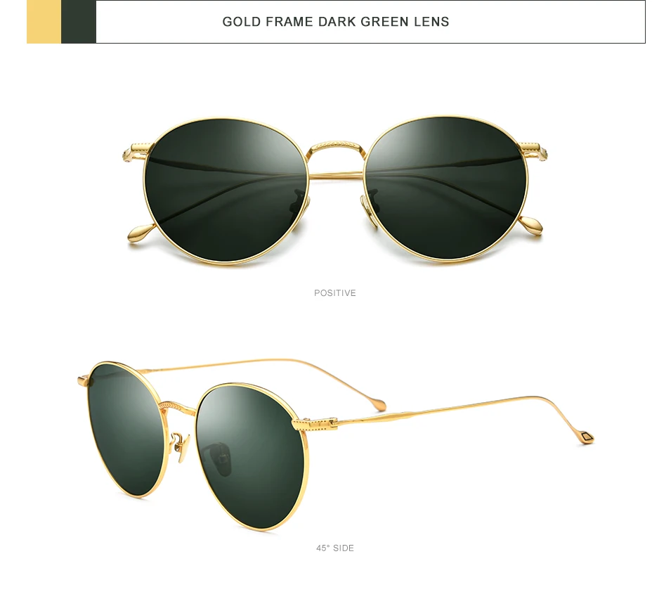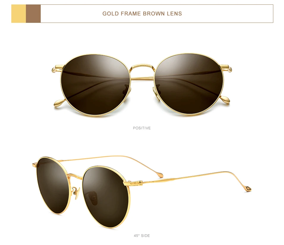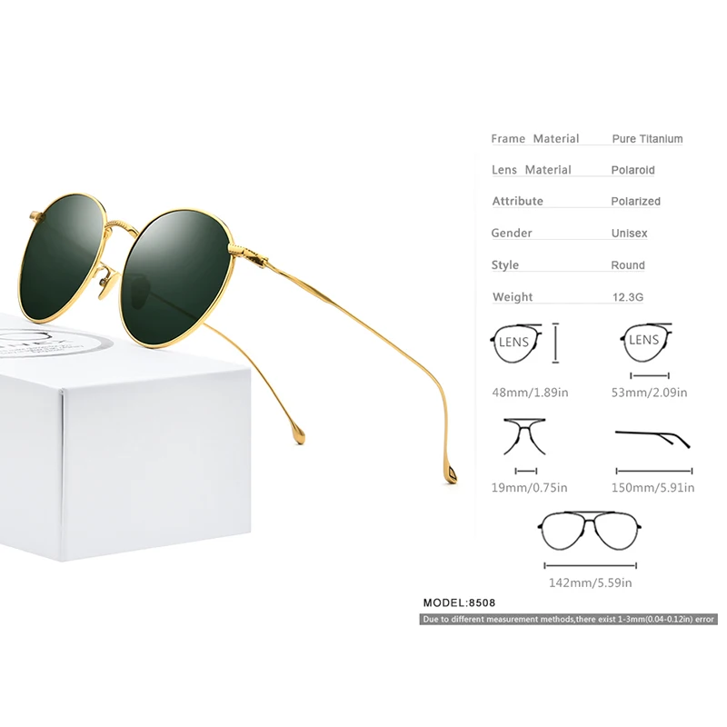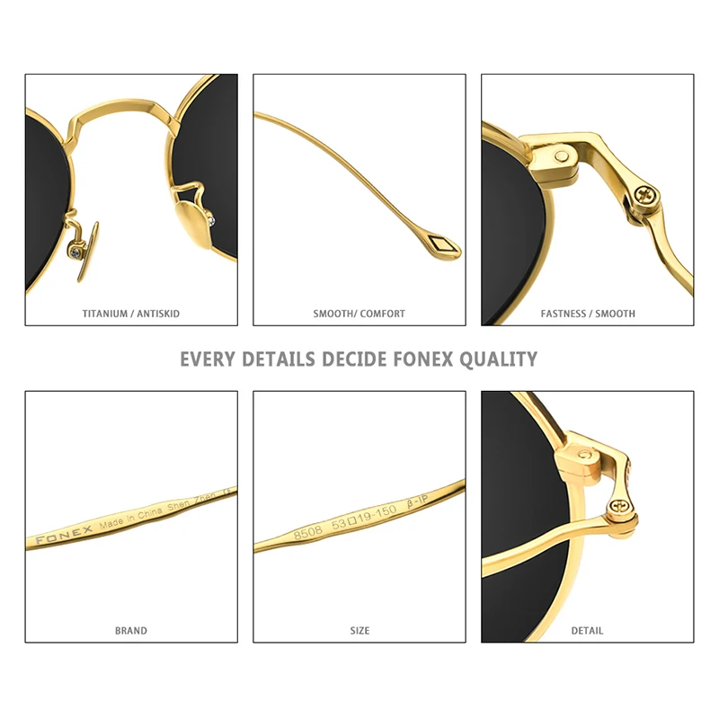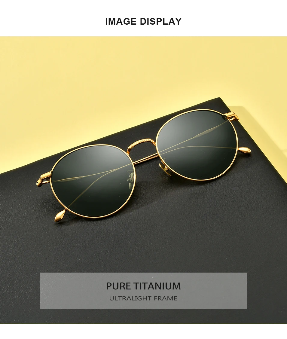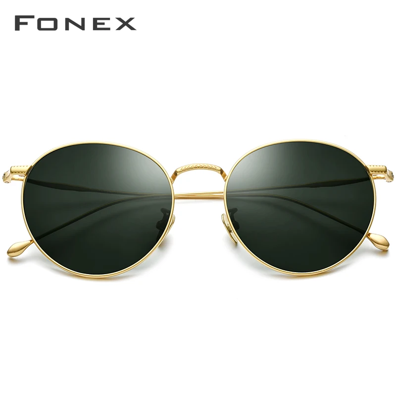 FONEX Очки солнцезащитные мужские и женские круглые из титана с защитой UV400