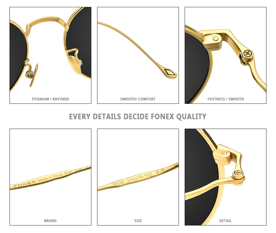 FONEX Мужские и женские винтажные очки, солнцезащитные очки из тита...