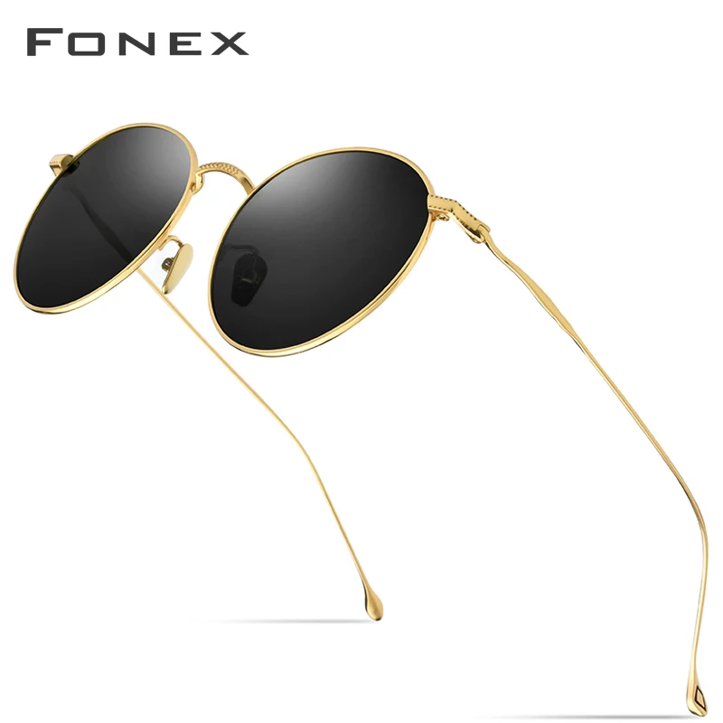 FONEX Очки солнцезащитные мужские и женские круглые из чистого тита...