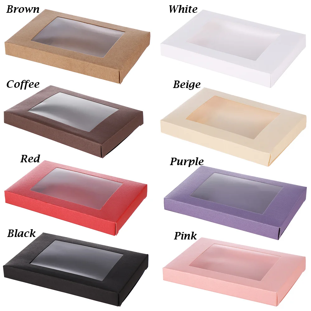 10 шт., многоразмерные бумажные подарочные коробки «сделай сам» с прозрачным ПВХ окном, коробка для конфет, сувениры, Свадебная вечеринка, винтажная цветная крафт-упаковка, хранение