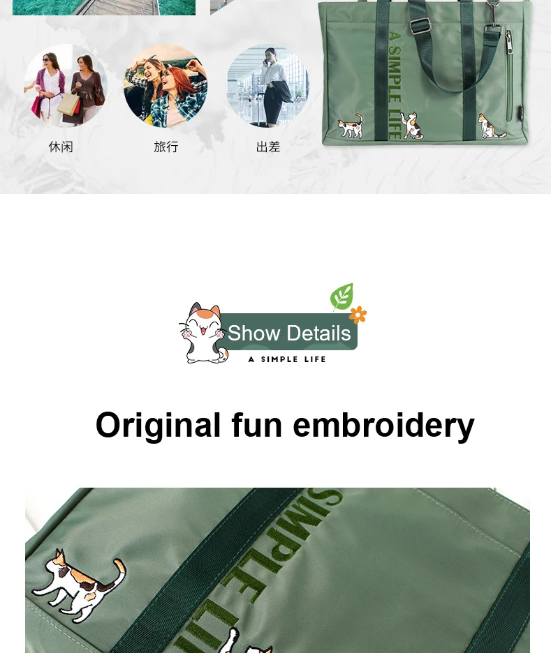 Сумка женская нейлоновая, с вышивкой в виде цветов и принцессы, водонепроницаемая