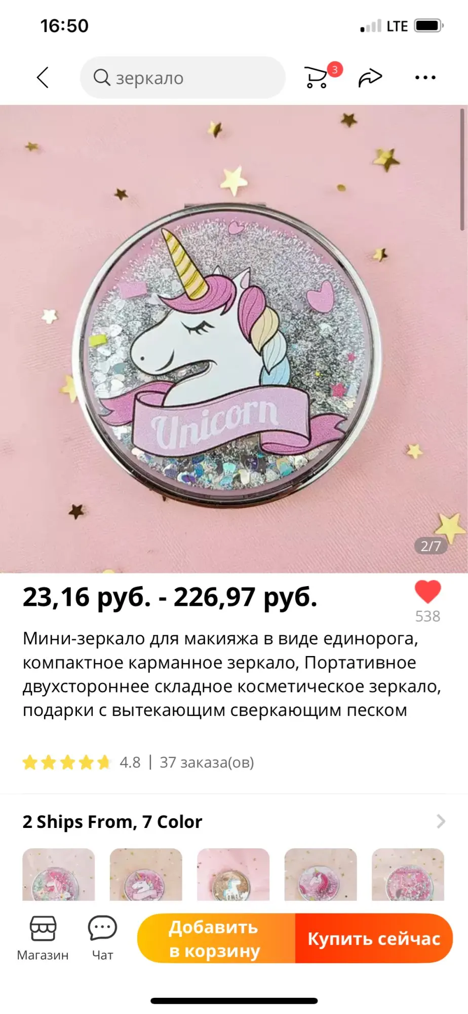 Заказ пришёл быстро, за 2 недели (изначально сообщали про месяц+). Зеркало милое, однако на фото цвет блёсток был серебристый, а в итоге получила с золотыми. Не страшно, но не ожидала такого. Будьте готовы к подобным сюрпризам)