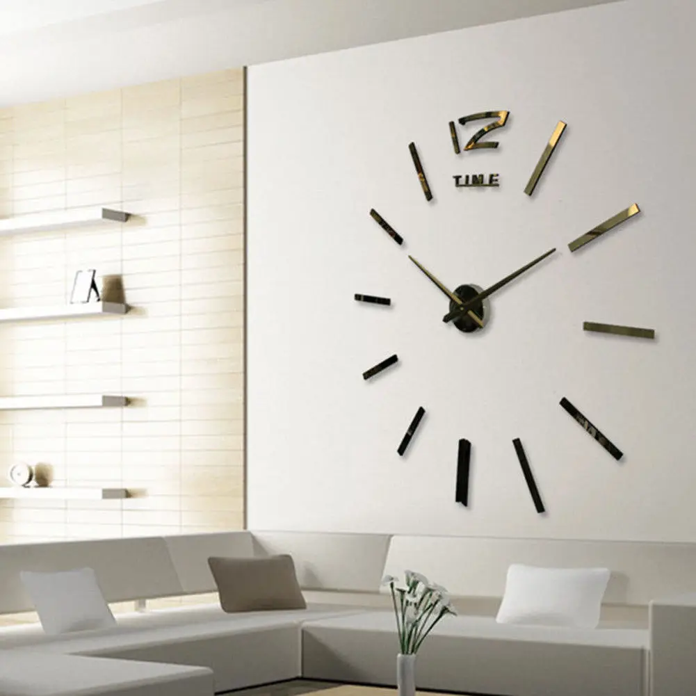 Современный зеркальный настенный стикер 3D сделай сам, большие часы...