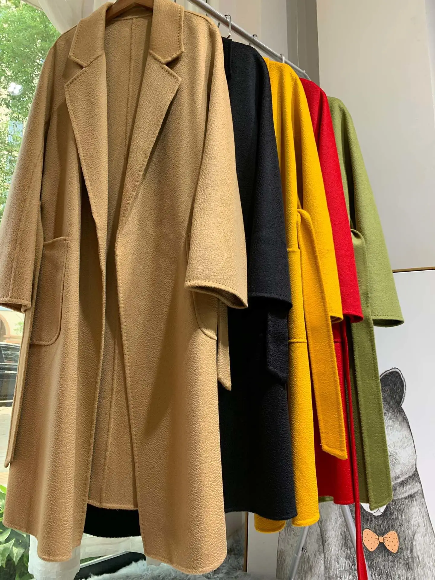 Модная женская длинная верхняя одежда из 100% натуральной шерсти в Корейском стиле, кардиган с искусственной волной, шерстяные пальто, пальто