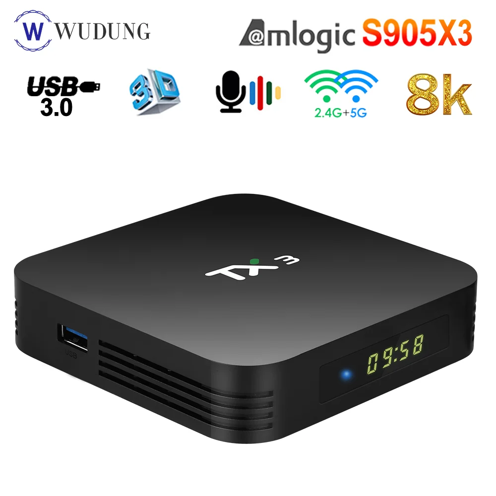 ТВ-приставка Tanix TX3, Android 9,0, Amlogic S905X3, 8K, 4 + 3264 ГБ, 2,45 ГГц, Wi-Fi