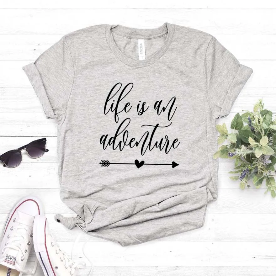 Забавная Хлопковая женская футболка Life Is An Adventure с графическим рисунком, Повседневная рубашка с круглым вырезом и коротким рукавом в стиле христианской моды, топы, футболки