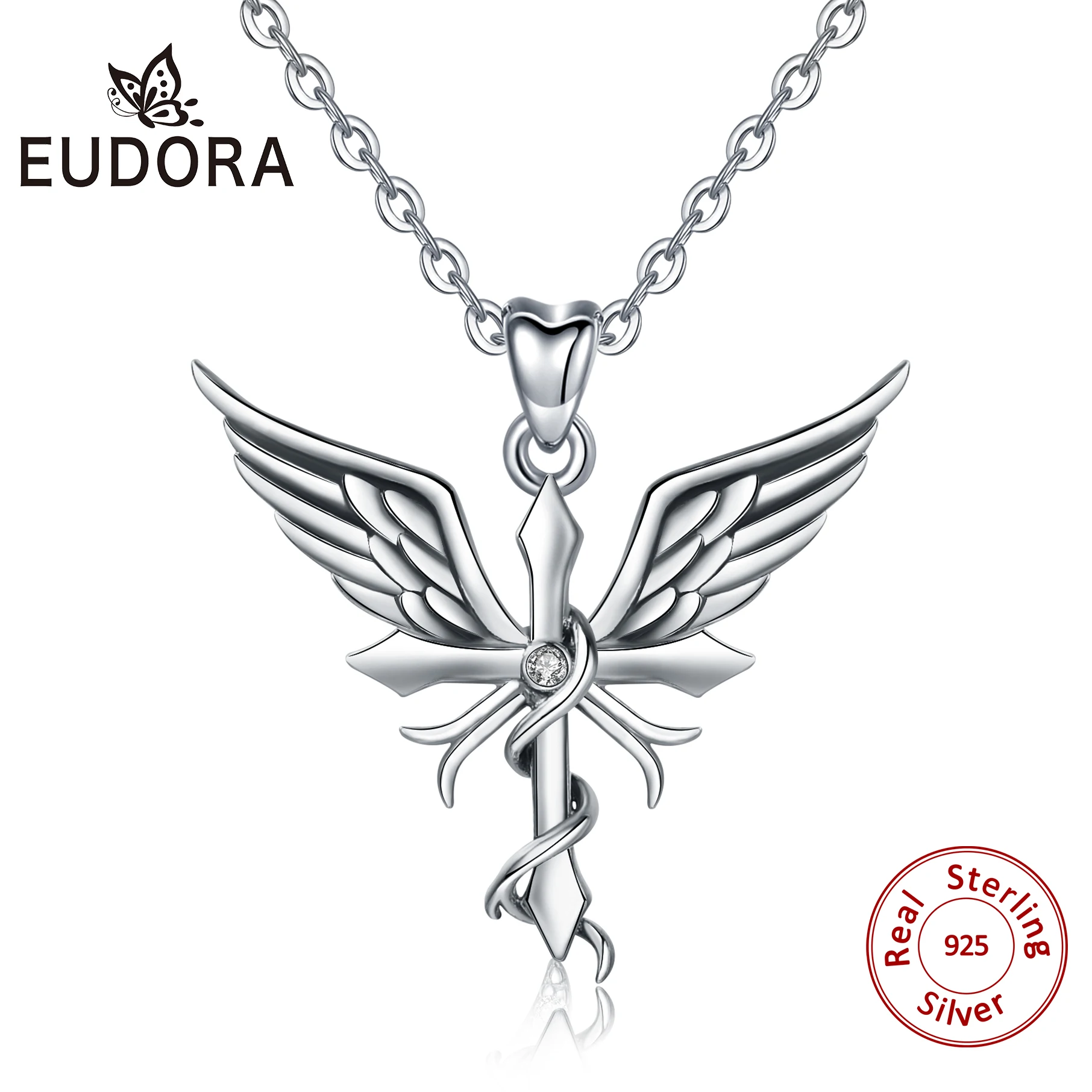 Кулон с крестом EUDORA из стерлингового серебра 925 пробы, ожерелье из цельного серебра с подвеской в форме Креста, ювелирные изделия с коробкой для мужчин и женщин CYD503
