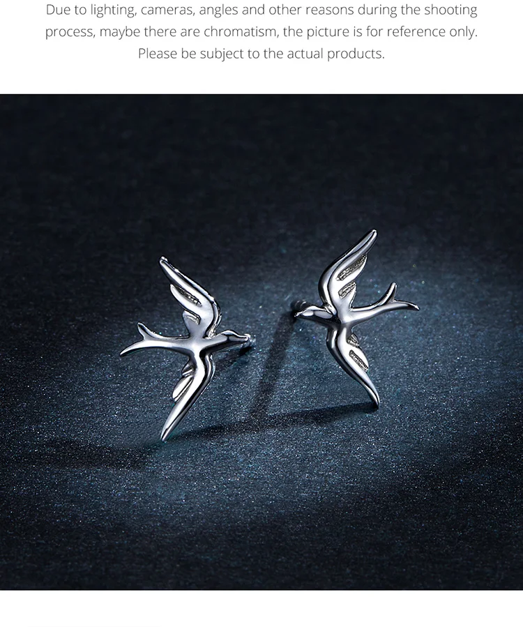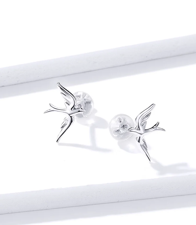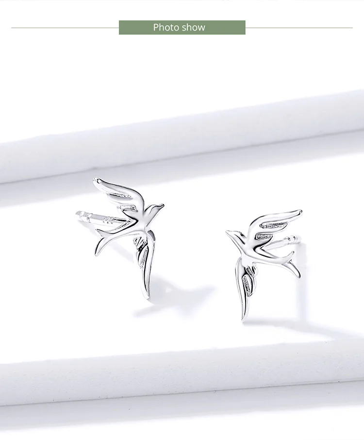 Женские серьги-гвоздики из серебра 925 пробы, в виде ласточек, BSE302