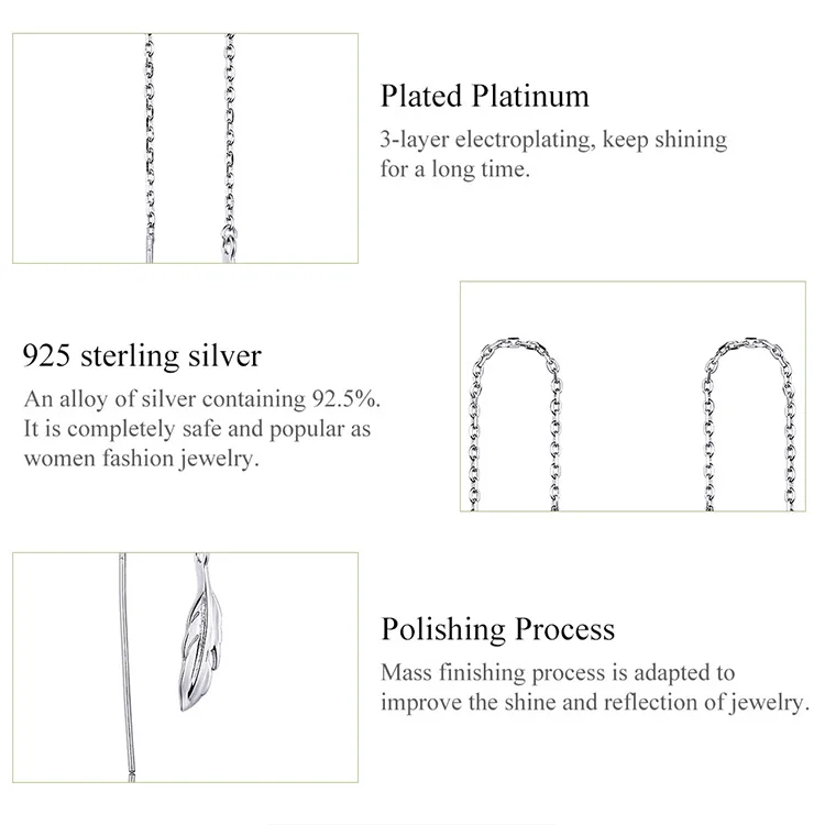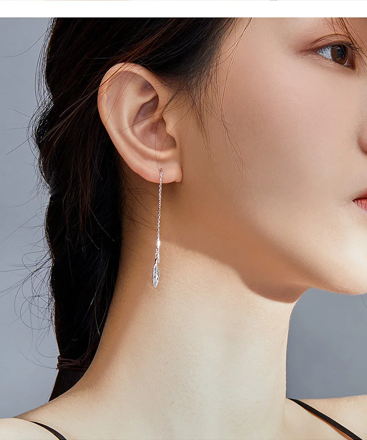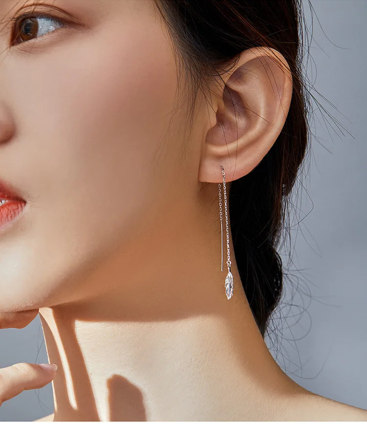 Женские длинные серьги крылья ангела, висячие серьги в виде пера из стерлингового серебра 925 пробы, ювелирные украшения, ECE786
